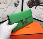 HM CLUTCH CONSTANCE 20.5 GREEN CALFSKIN SILVER HARDWARE