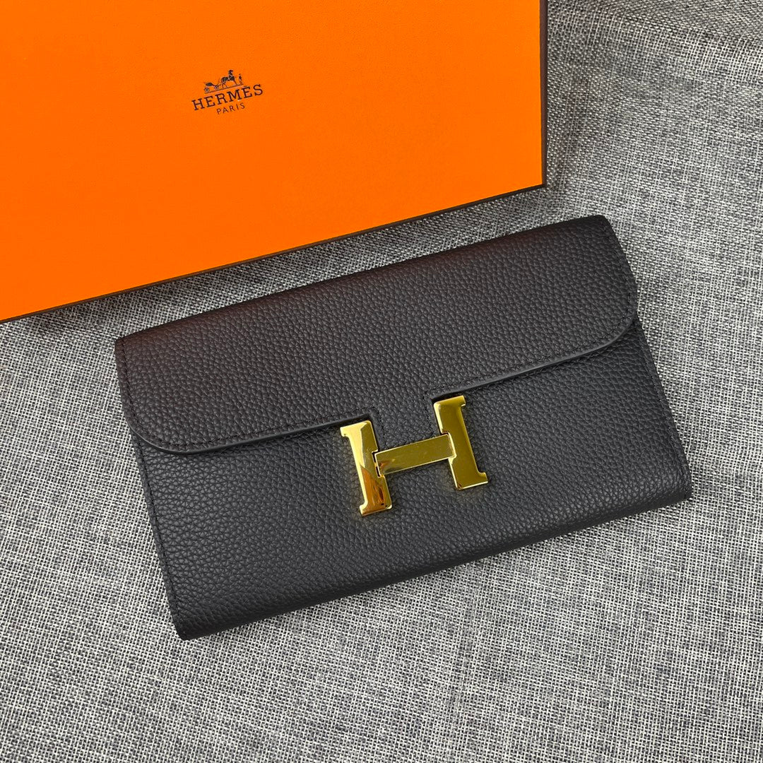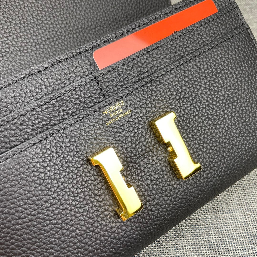 HM CLUTCH CONSTANCE 22 BLACK CALFSKIN GOLD HARDWARE