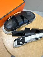 HM ELECTRIC SANDAL BLACK AND WHITE CALFSKIN