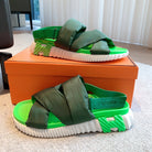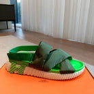 HM ELECTRIC SANDAL DARK GREEN FABRIC AND CALFSKIN
