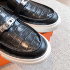 HM GAME SLIP-ON CROCODILE MOTIF SNEAKER BLACK CALFSKIN