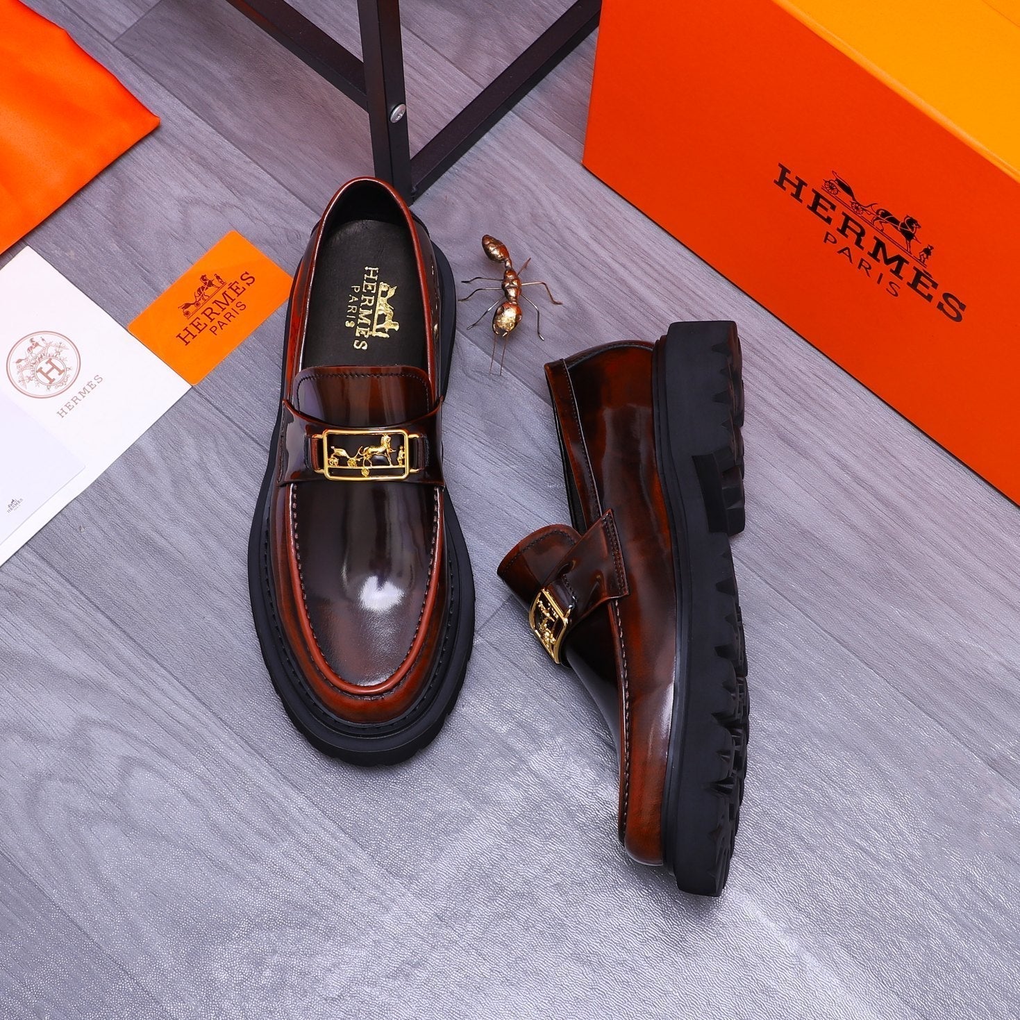 HM GOLD BUCKLE LOAFER GLOSSY WINE CALFSKIN