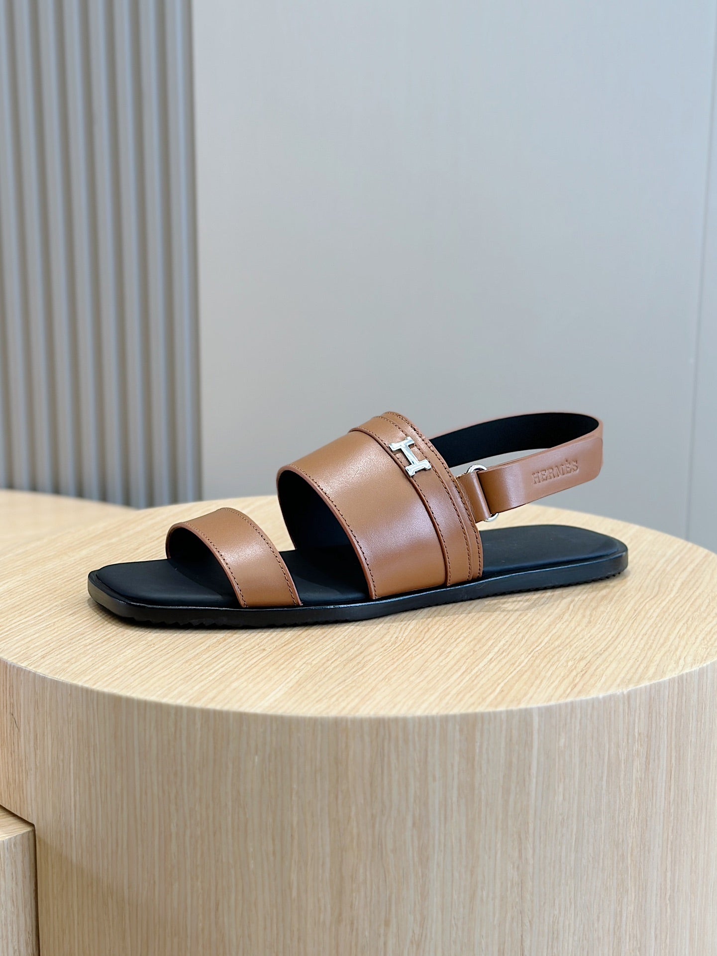 HM HENRIO FLAT SANDAL CARAMEL CALFSKIN