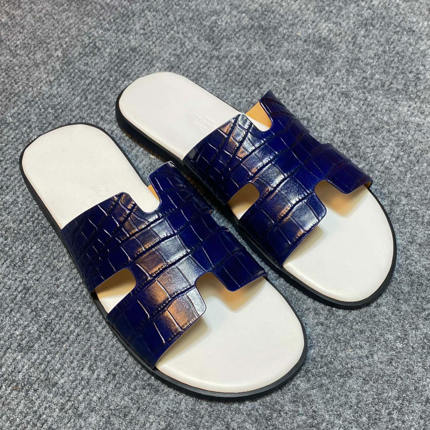 HM IZMIR CROCODILE MOTIF SANDAL NAVY AND WHITE CALFSKIN