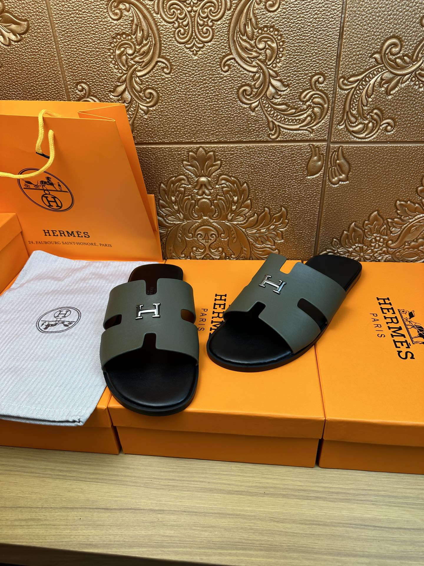 HM IZMIR H-BUCKLE SANDAL ARMY CALFSKIN