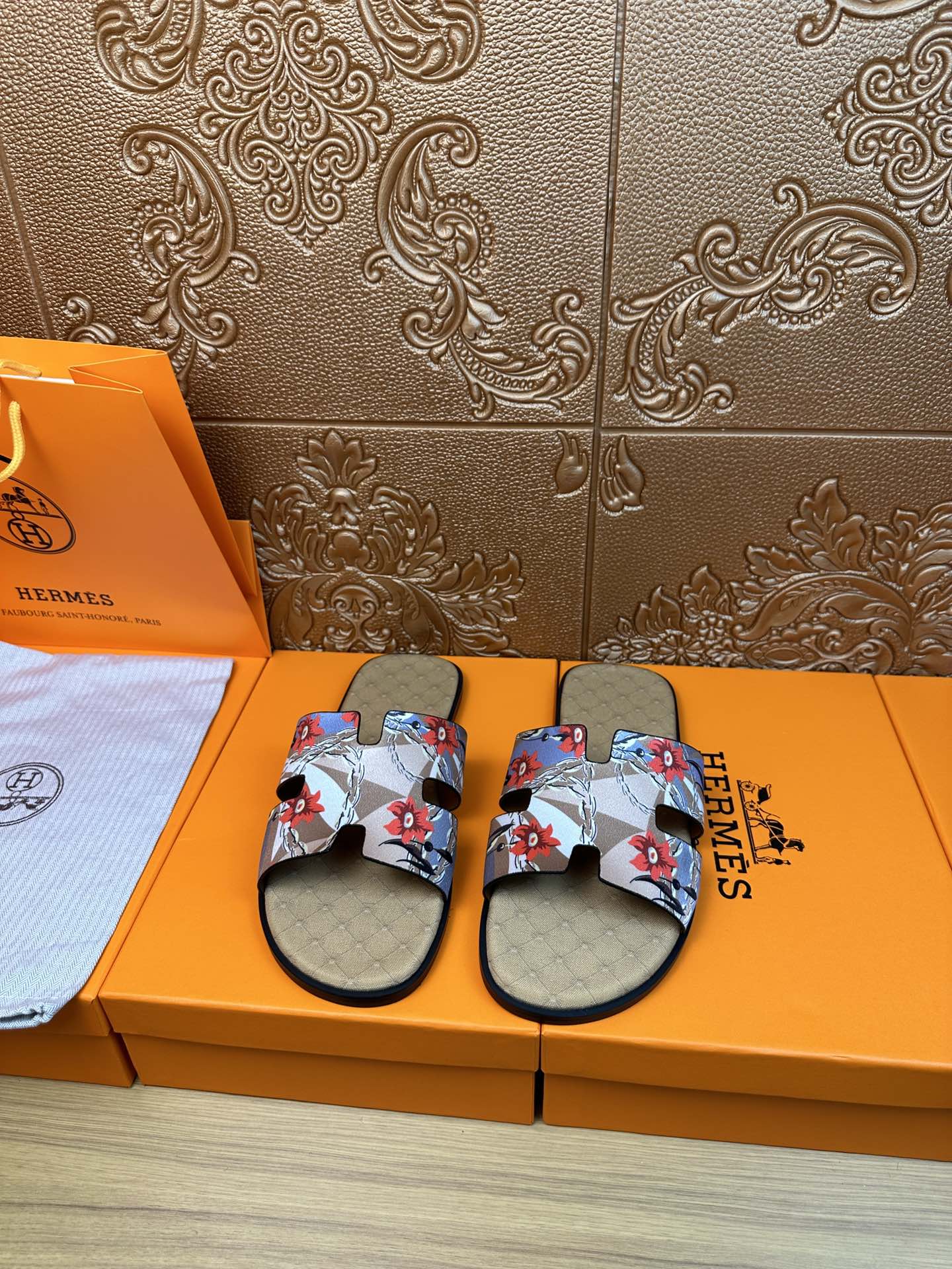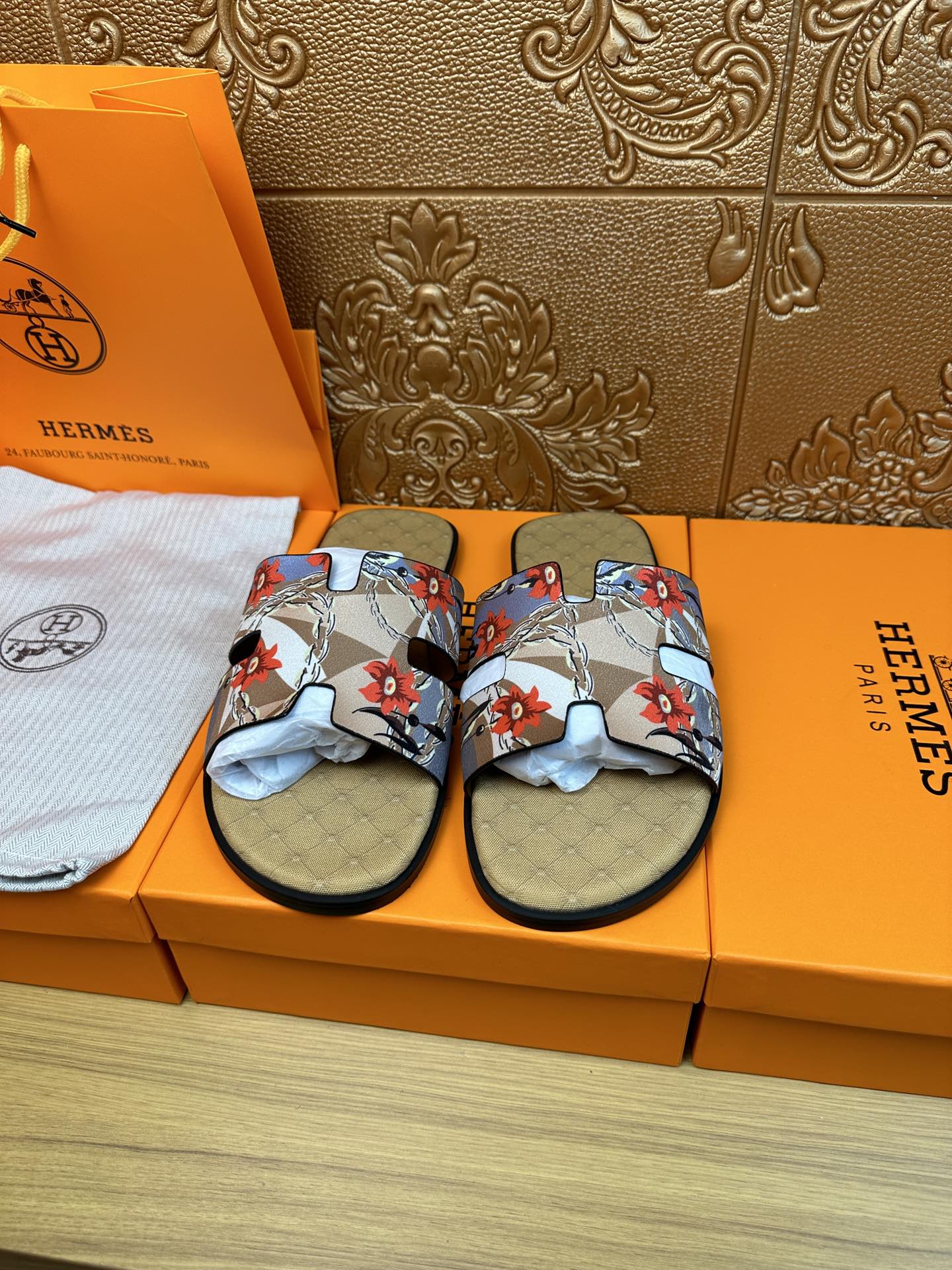 HM IZMIR SANDAL MUSTARD SUEDE WITH FLOWER MOTIF