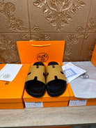HM IZMIR SLIPPER SAFFRON AND BLACK CALFSKIN