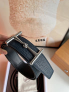 HM JUMBO BELT BUCKLE & REVERSIBLE CIDER ORANGE AND BLACK LEATHER STRAP 38 MM SILVER HARDWARE