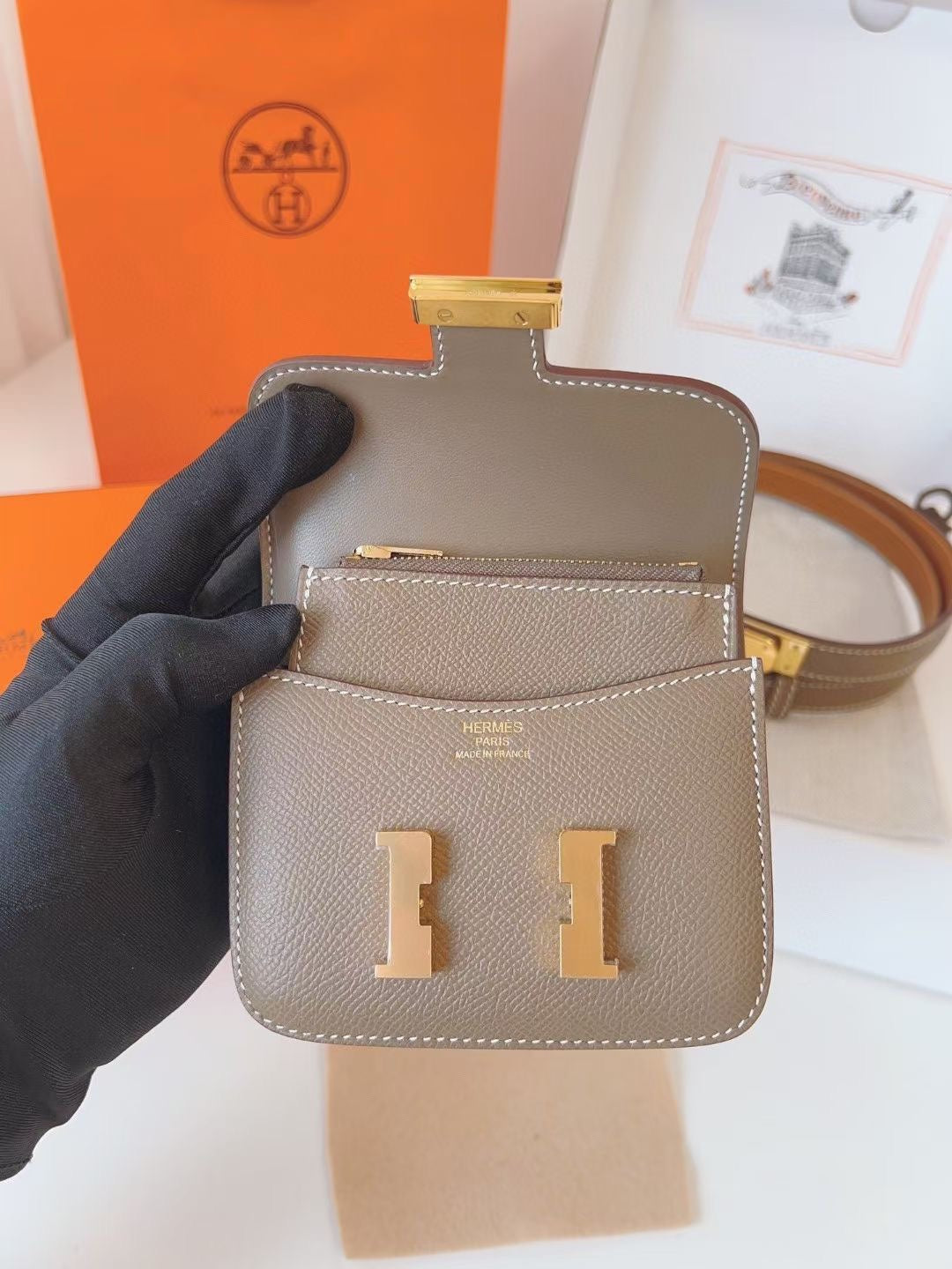 hm kelly belt 18mm with constance slim grey epsom gold hardware