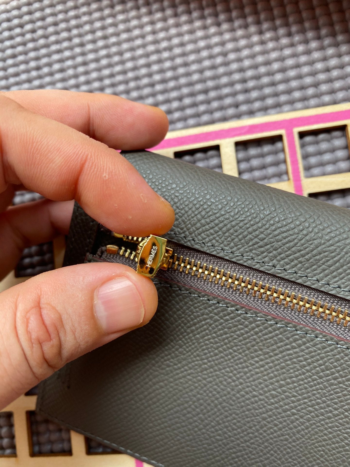 HM Kelly Pocket 13.5 Dark Grey Epsom Ghw