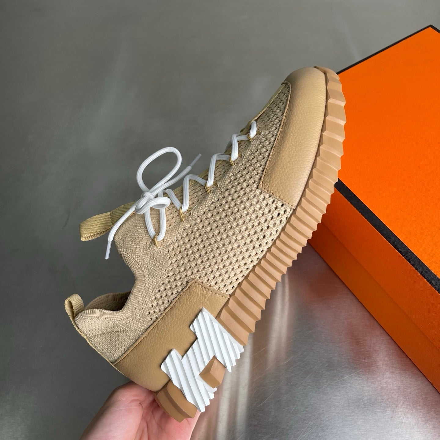 HM Men's 25 Lift Sneaker Beige Mesh Calfskin 703782