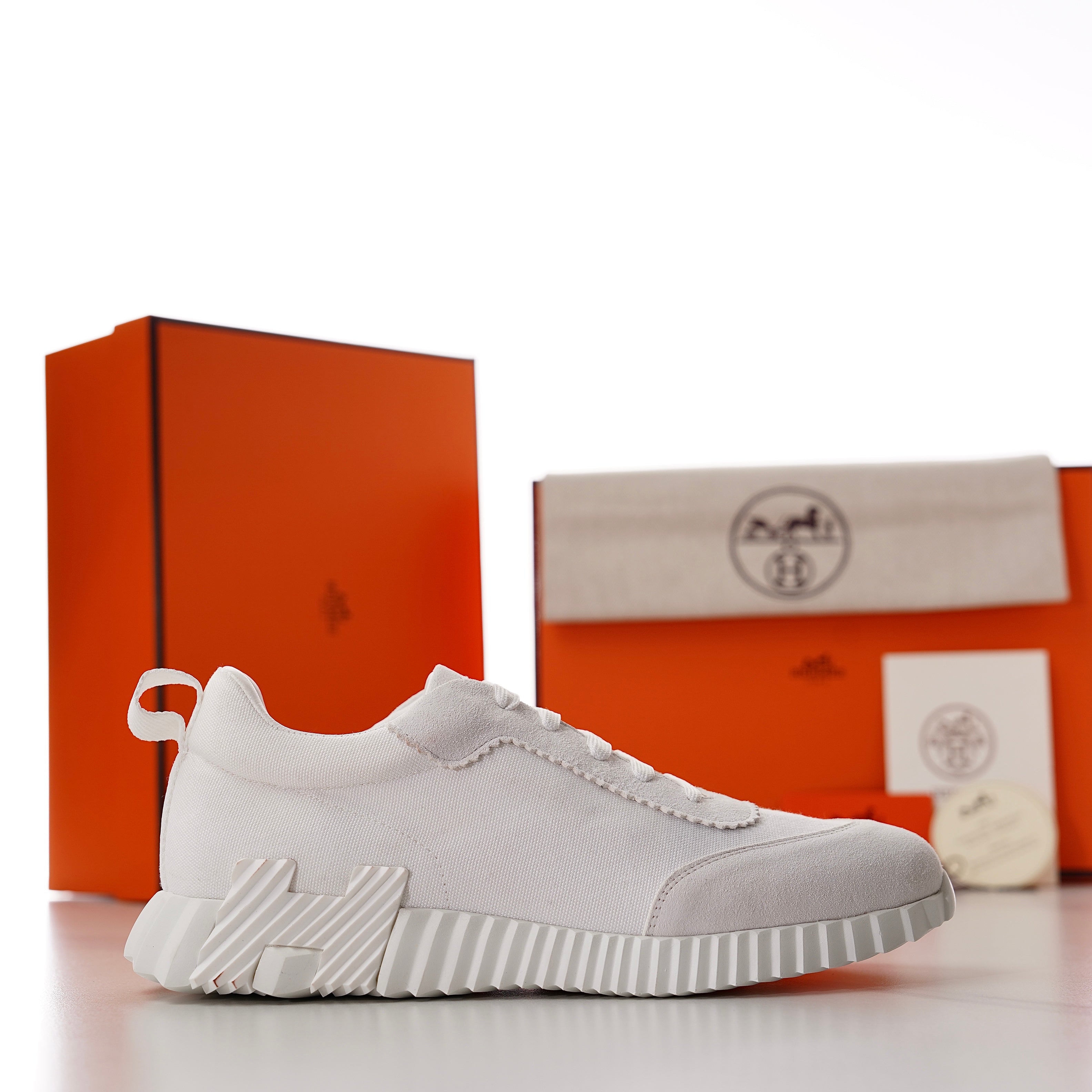 HM Men's Bouncing Sneaker White Fabric Suede 688616