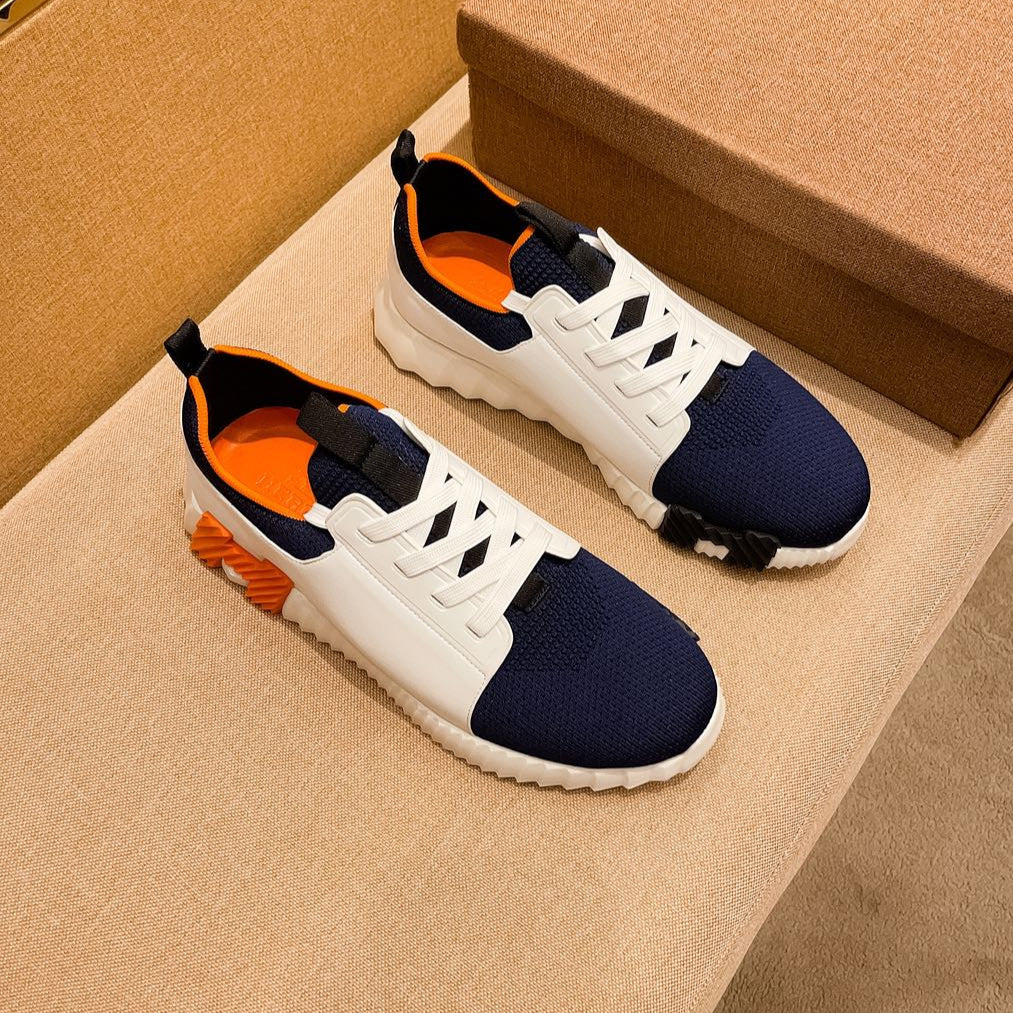 HM Men's Depart Slip-on Sneaker White Blue Knit Cowhide 263681