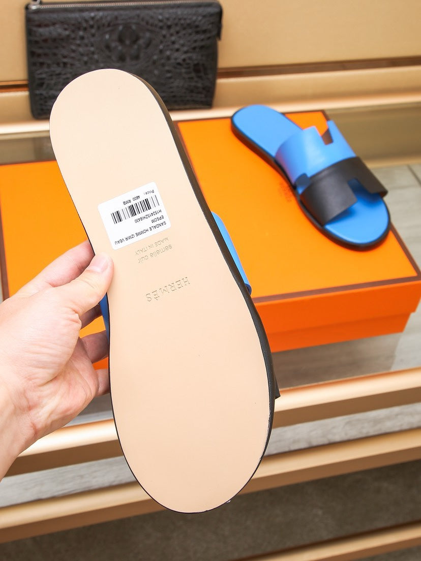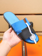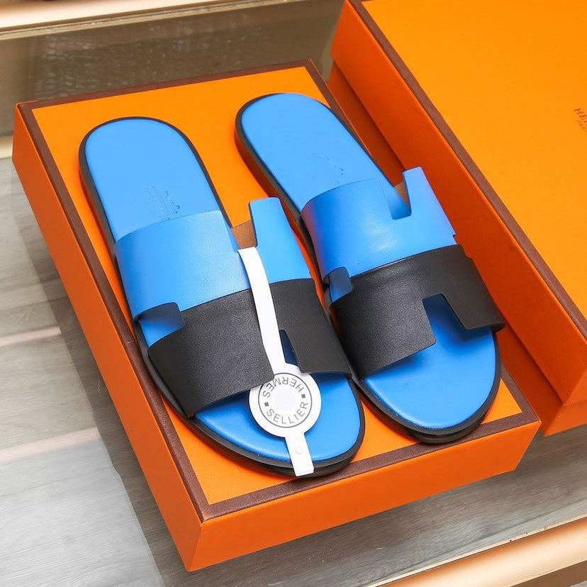 HM Men's Izmir Slide Black Blue Cowhide 685819