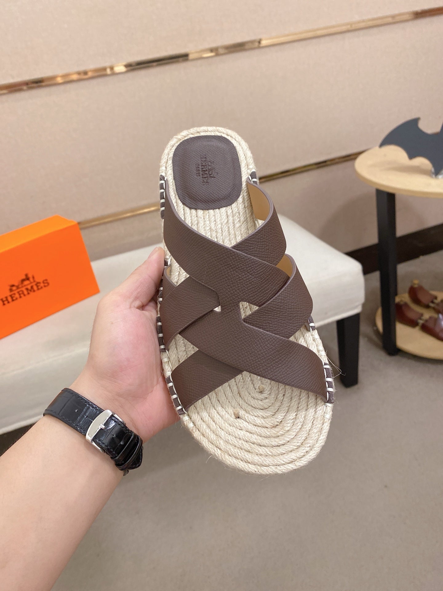 HM Men's Kazimir Sandal Dark Brown Espadrilles Cowhide 700887