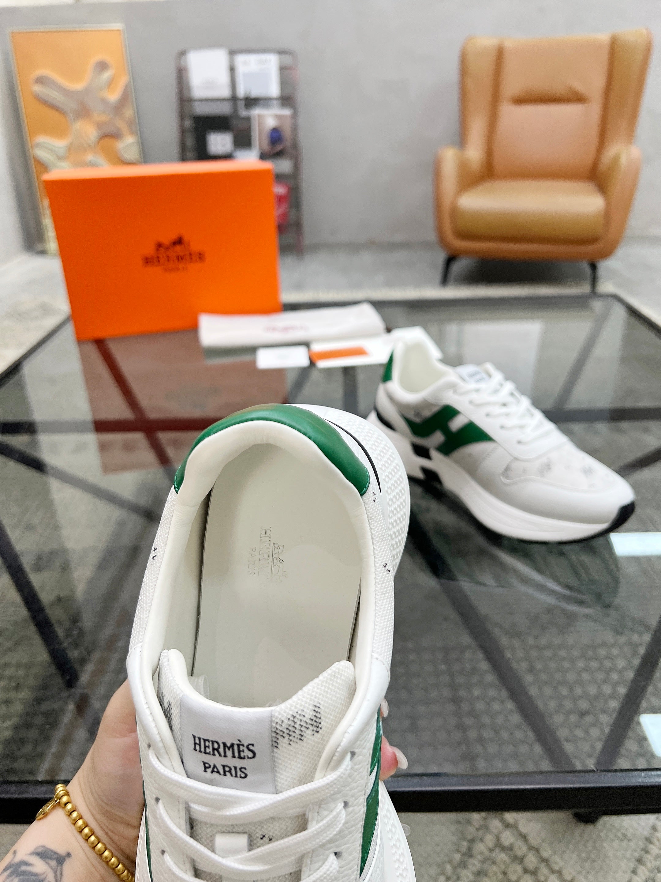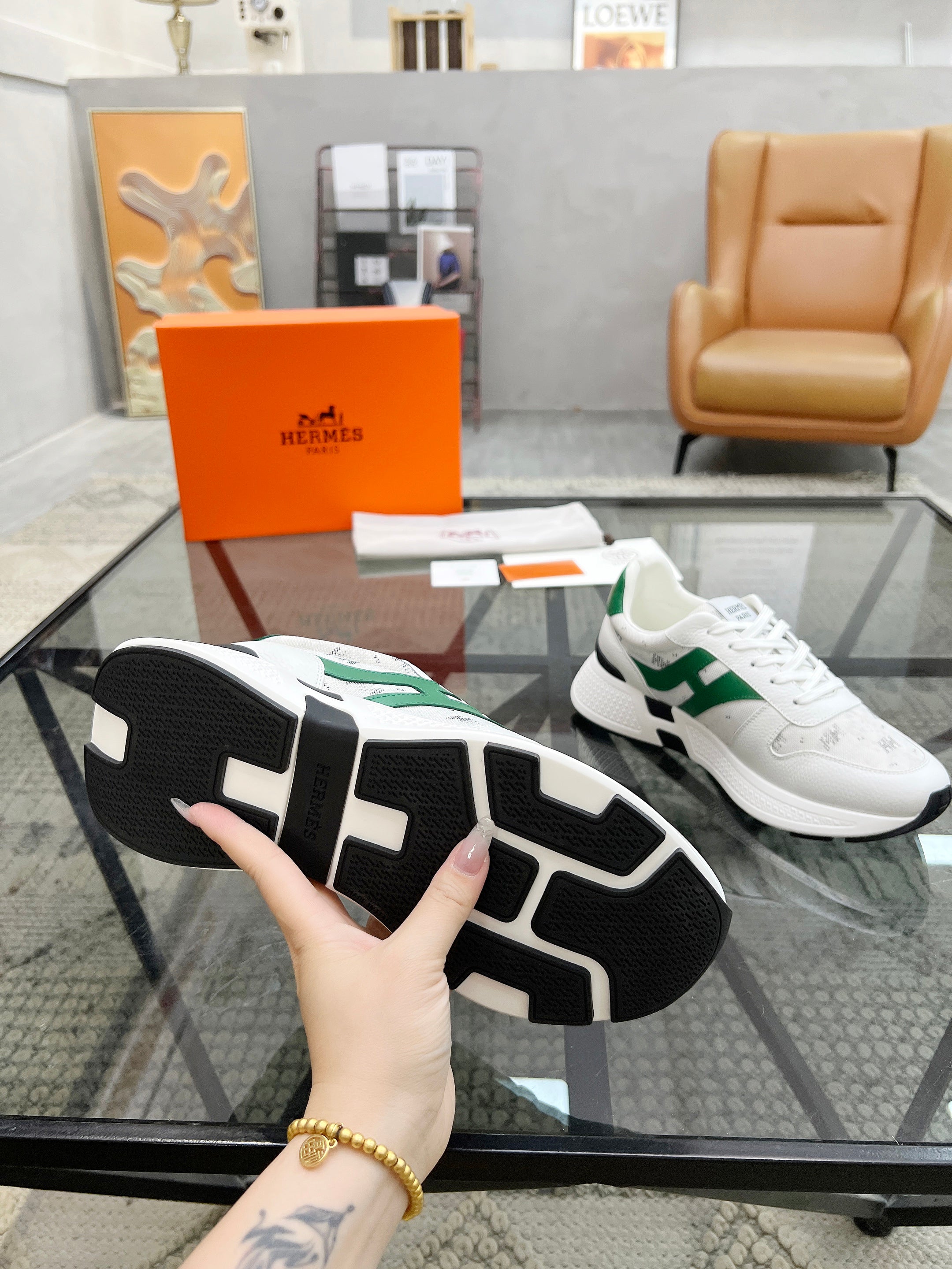 HM Men's Sneaker White Cowhide Fabric 603855