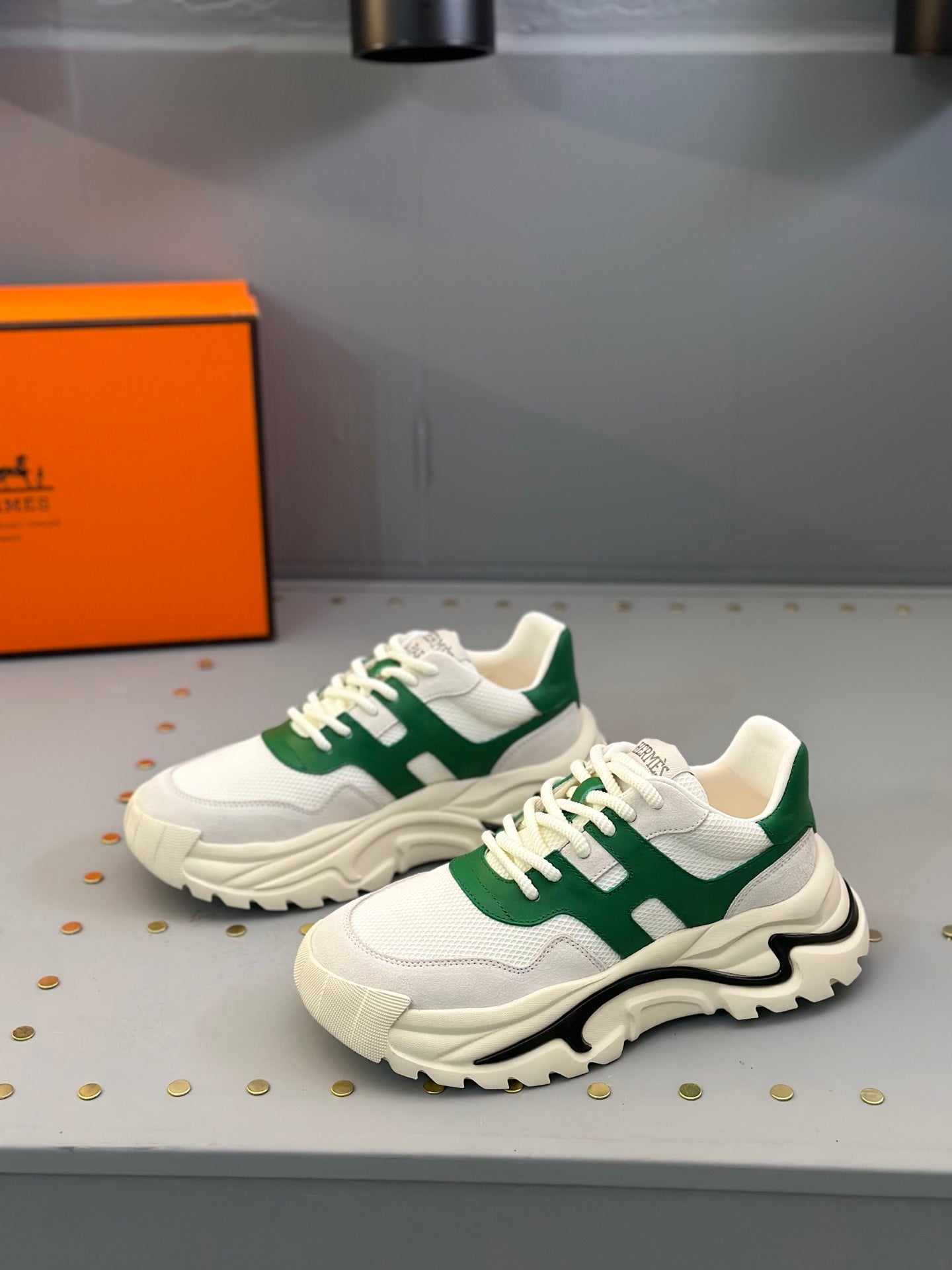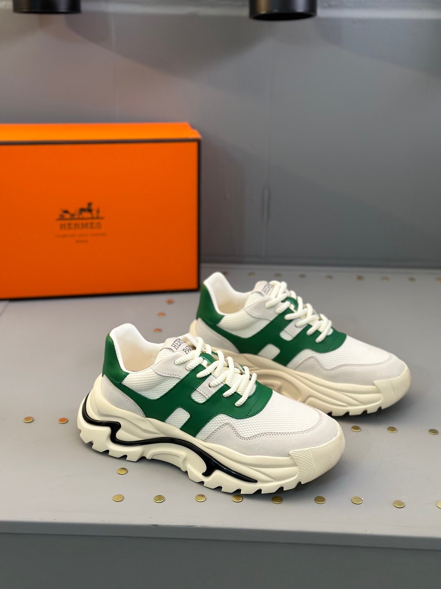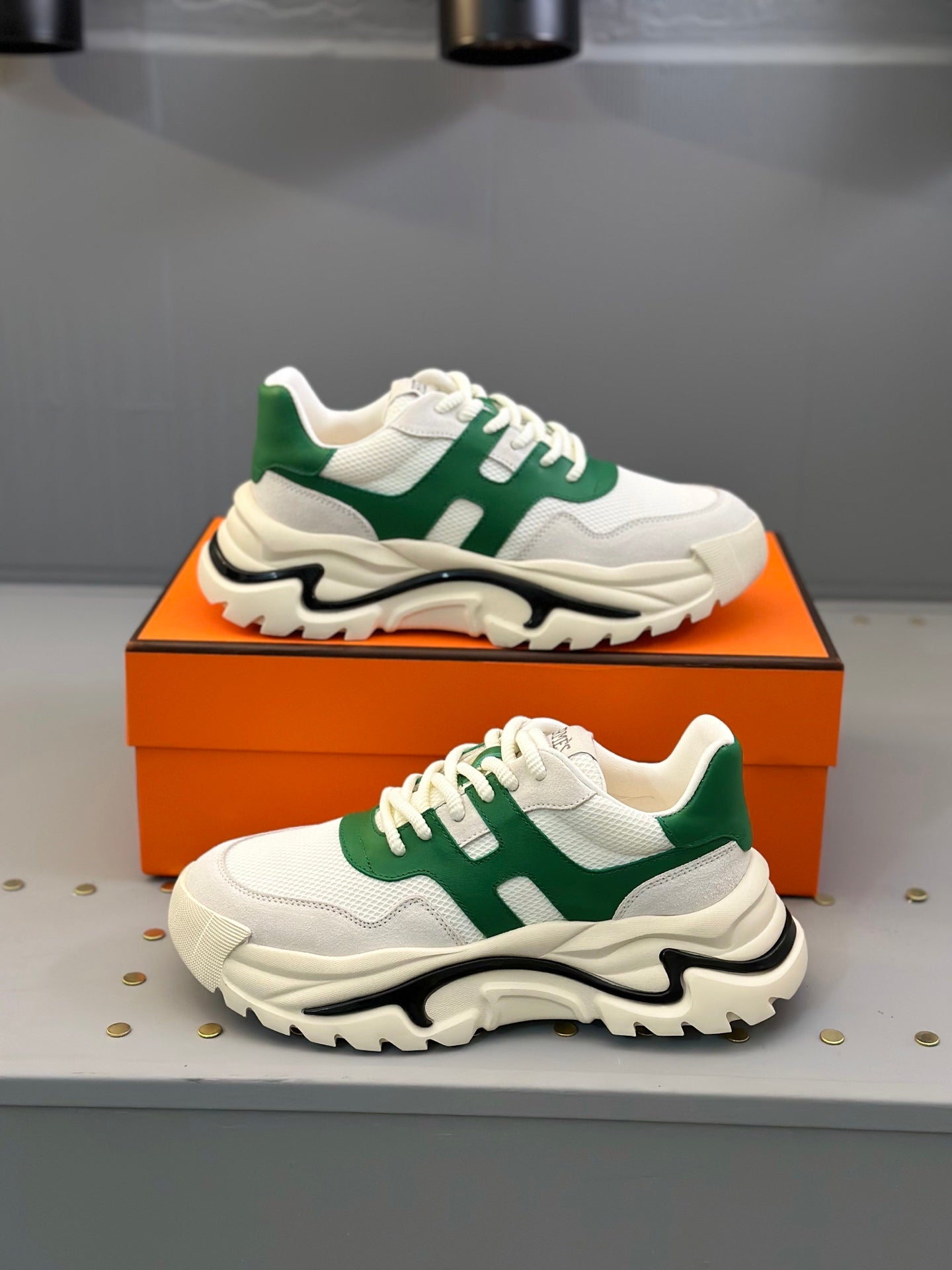HM Men's Sneaker White Green Mesh Calfskin 541263