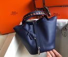 HM PICOTIN LOCK 18 NAVY EPSOM WITH BRAID STRAP