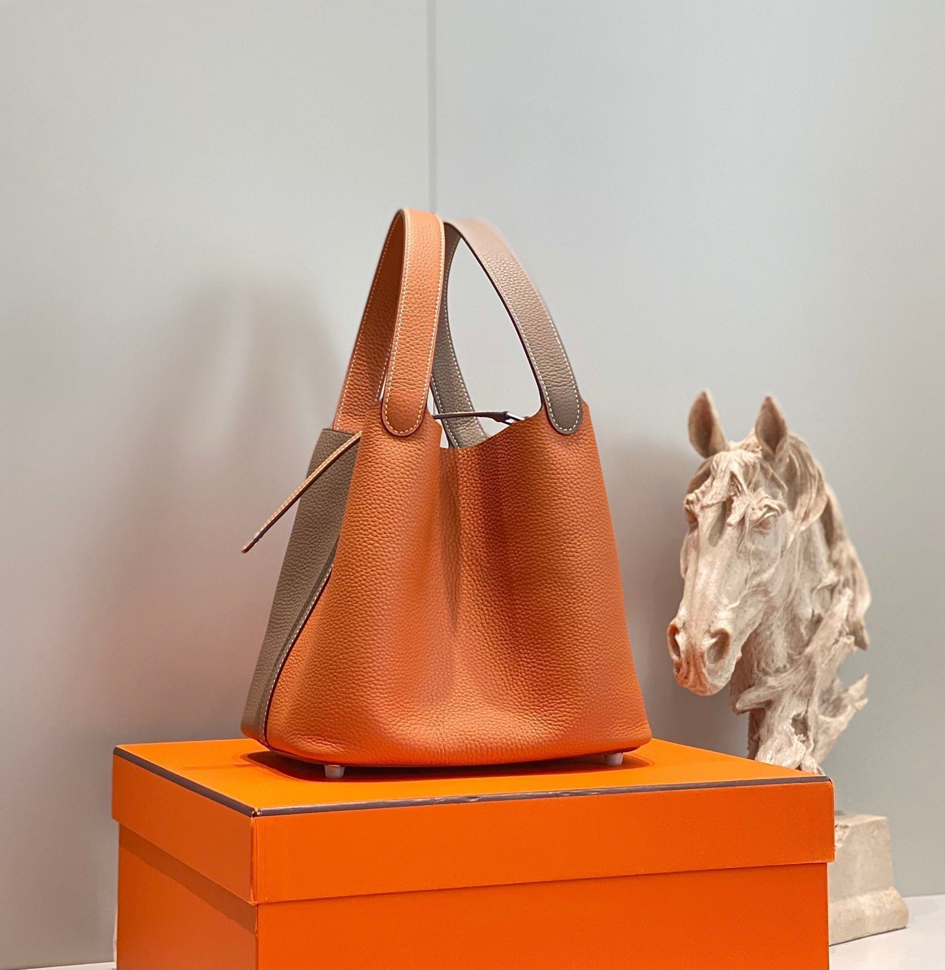 HM PICOTIN LOCK 22 ORANGE AND ASH BROWN TOGO LEATHER