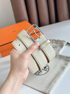 HM ROMAIN 35MM BELT WHITE CREAM LEATHER SILVER HARDWARE