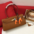 HM SHOULDER BAG 35 BROWN TOGO GOLD HARDWARE