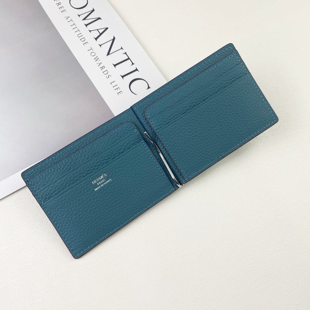 HM SILK’IN DOLLAR WALLET 11 CERULEAN GRAINED CALFSKIN