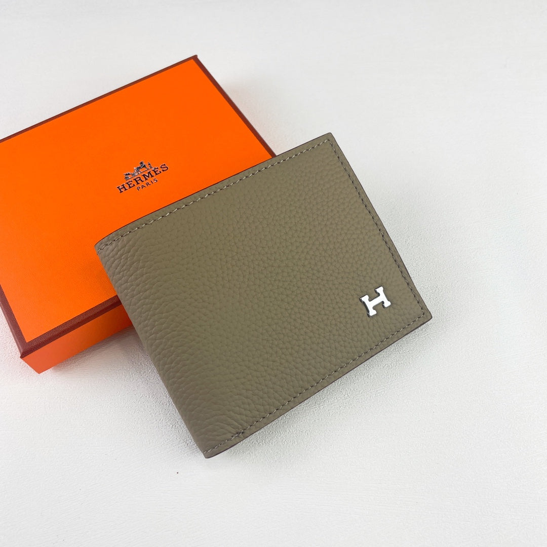 HM SILK’IN MEN’S SHORT WALLET 11.5 KHAKI GRAINED CALFSKIN
