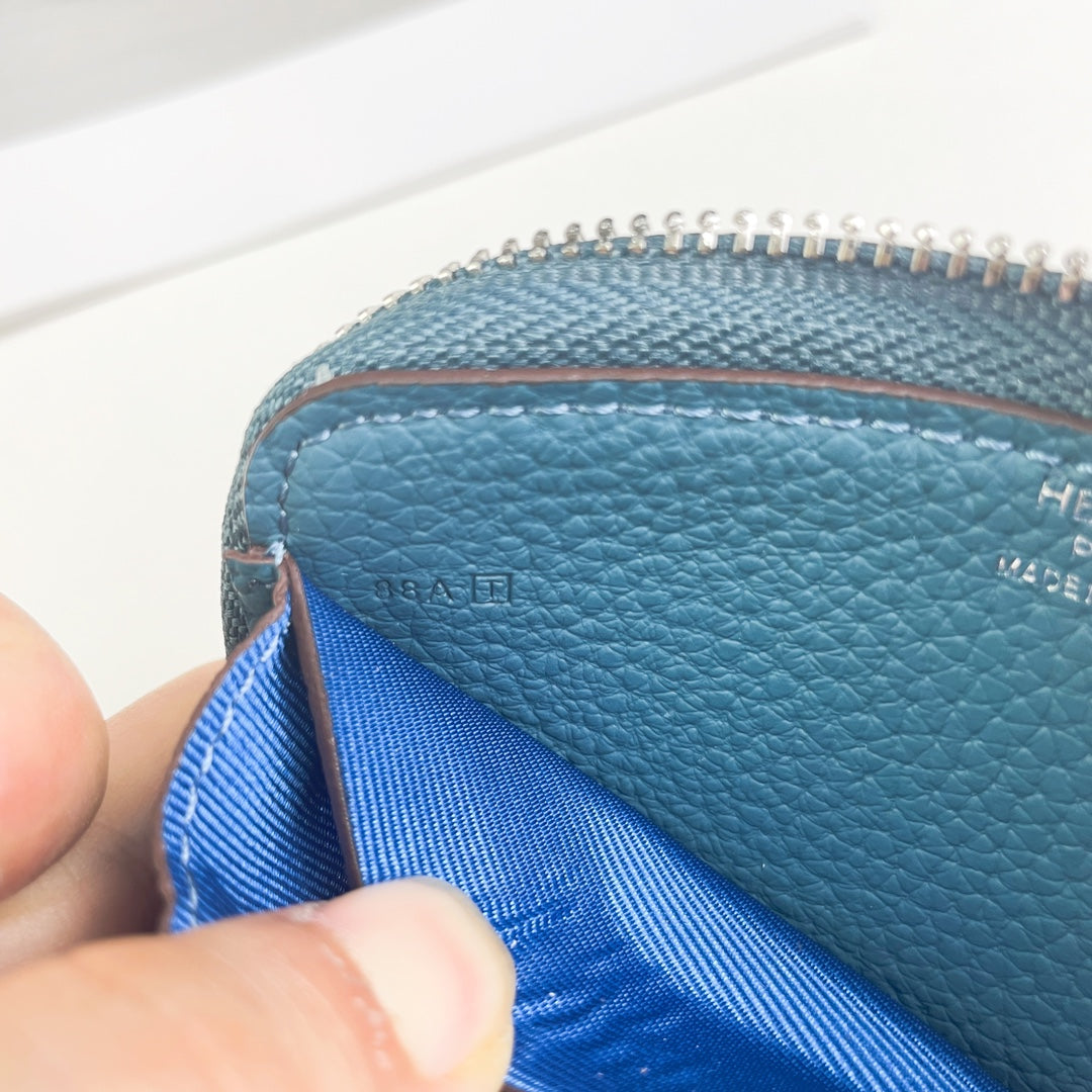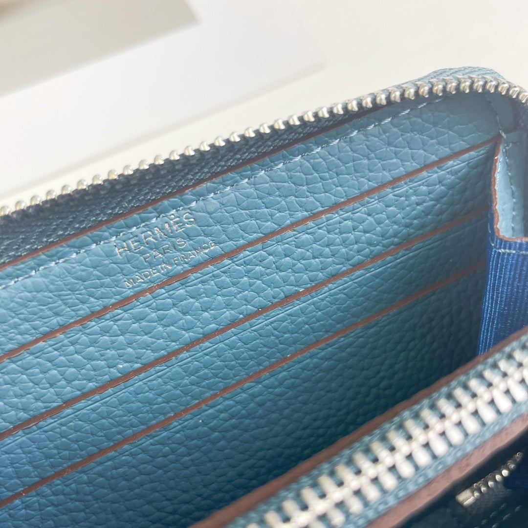 HM SILK'IN HOLED SHORT WALLET 11.5 CERULEAN GRAINED CALFSKIN