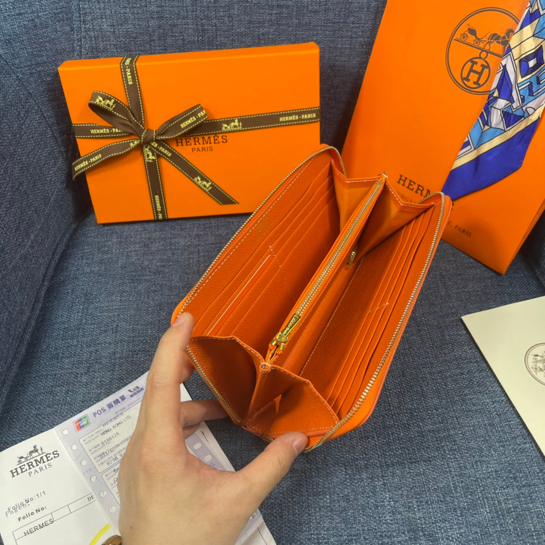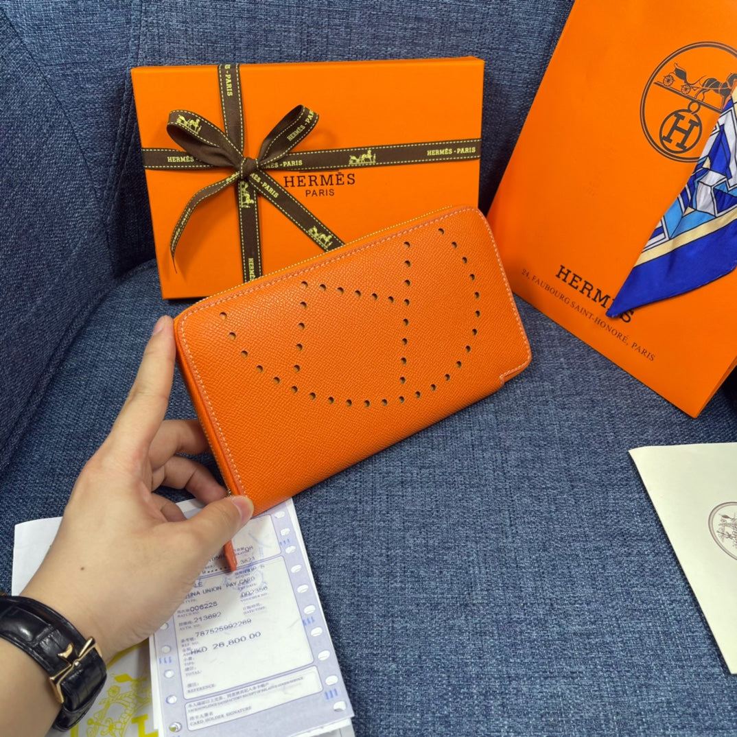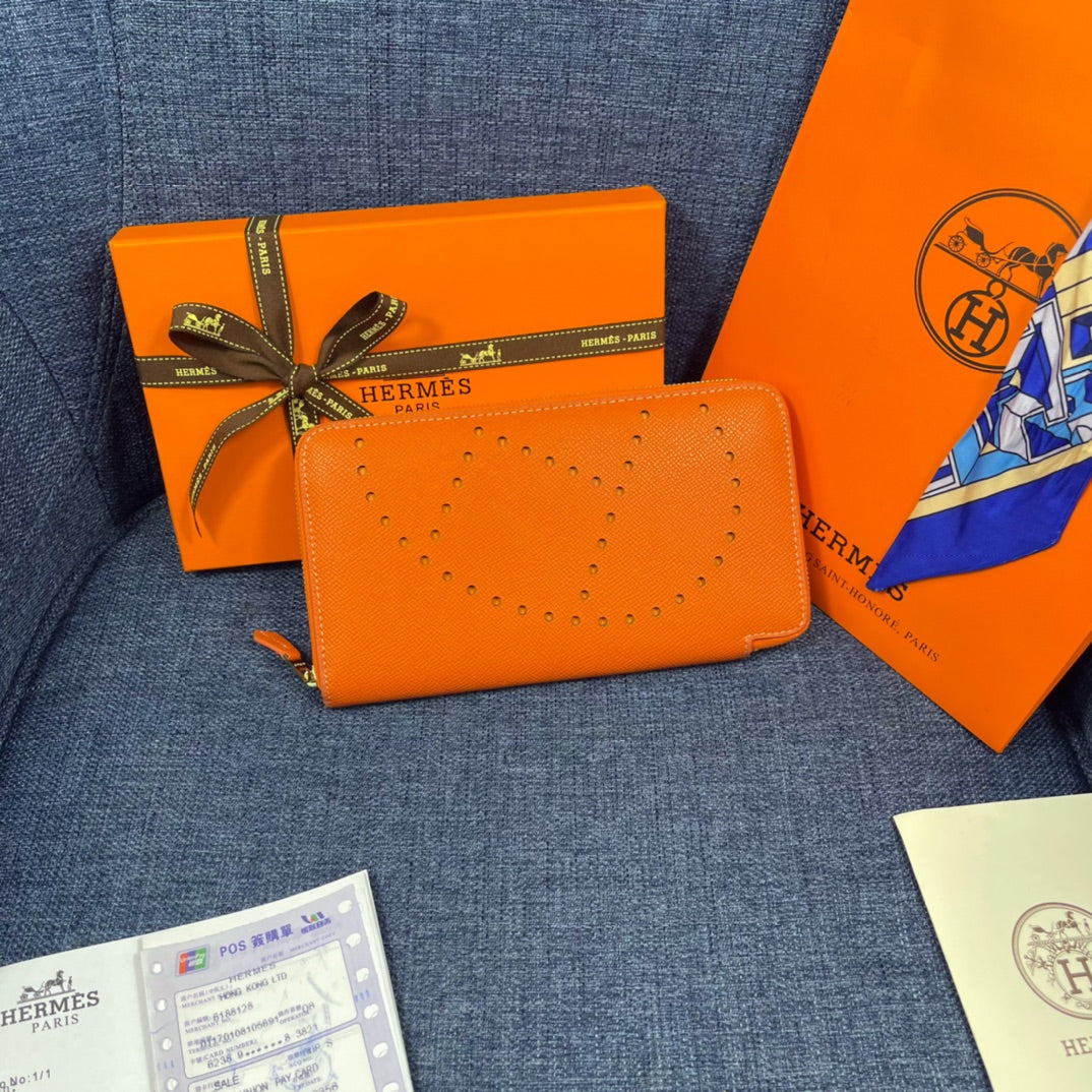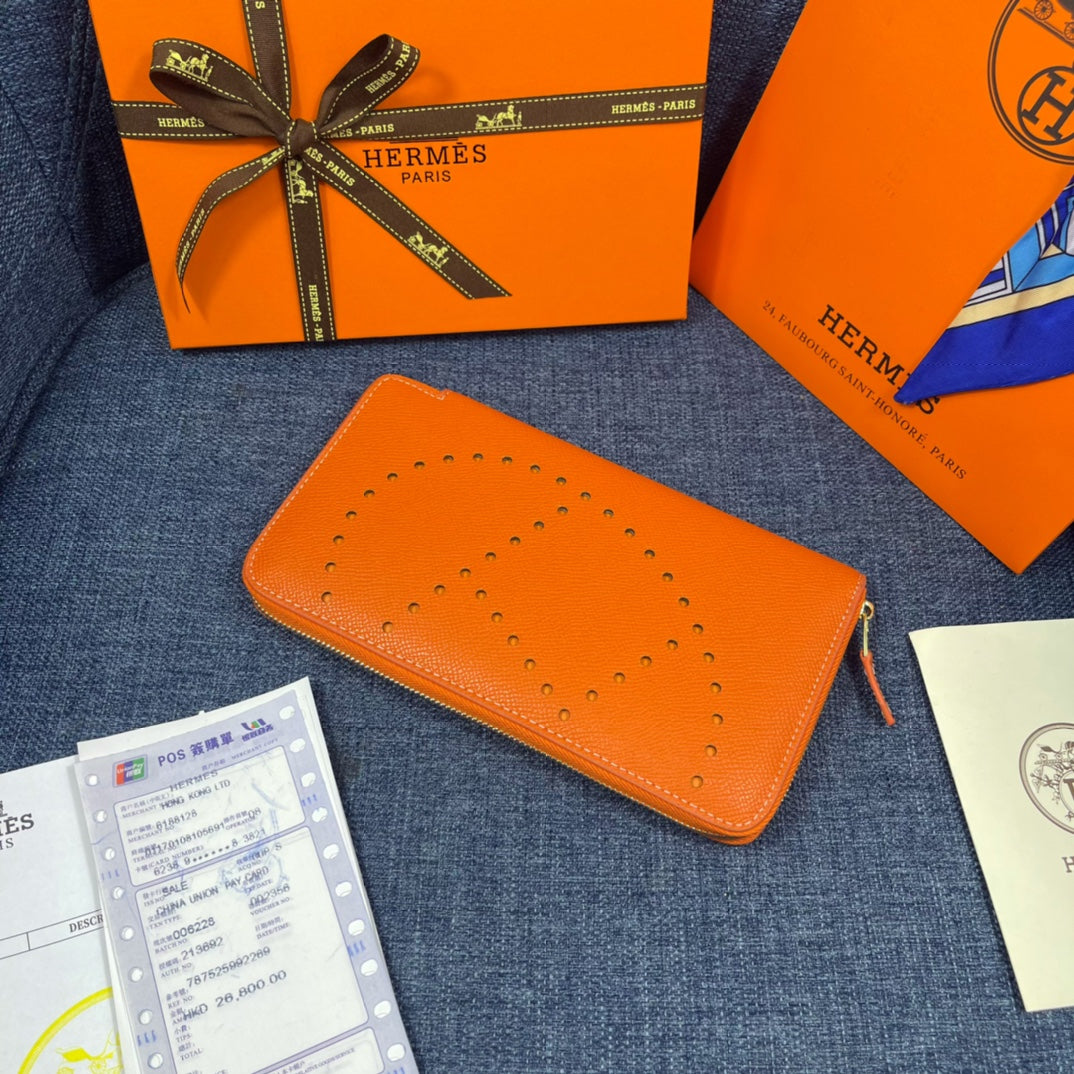 HM SILK'IN HOLED WALLET 19 ORANGE CALFSKIN