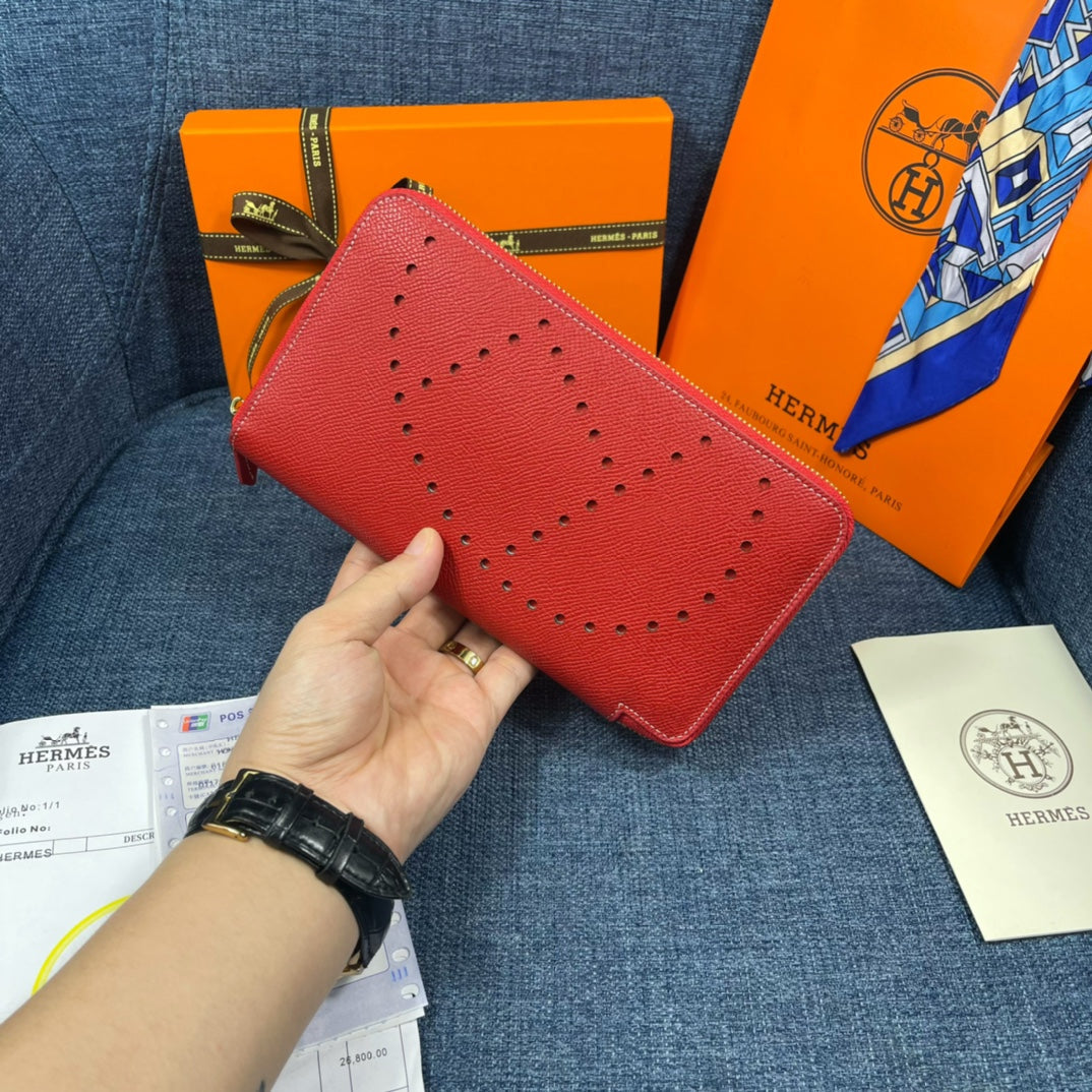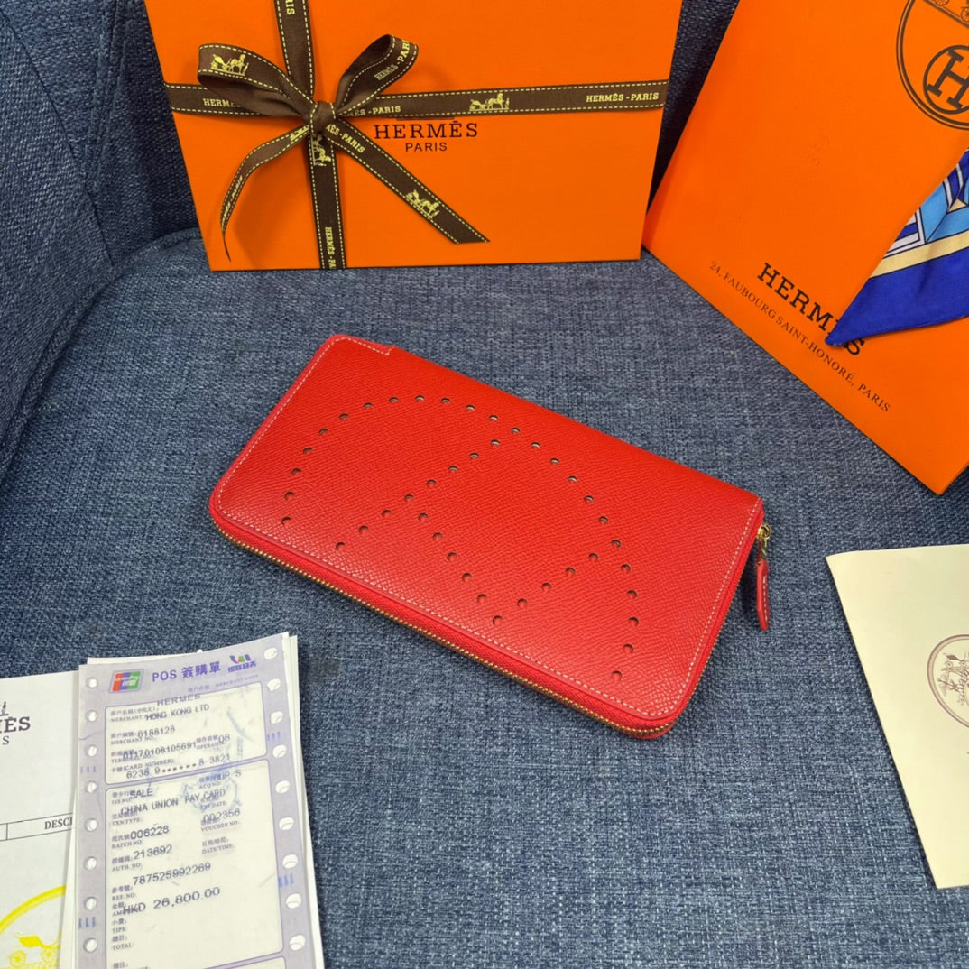 HM SILK'IN HOLED WALLET 19 RED CALFSKIN
