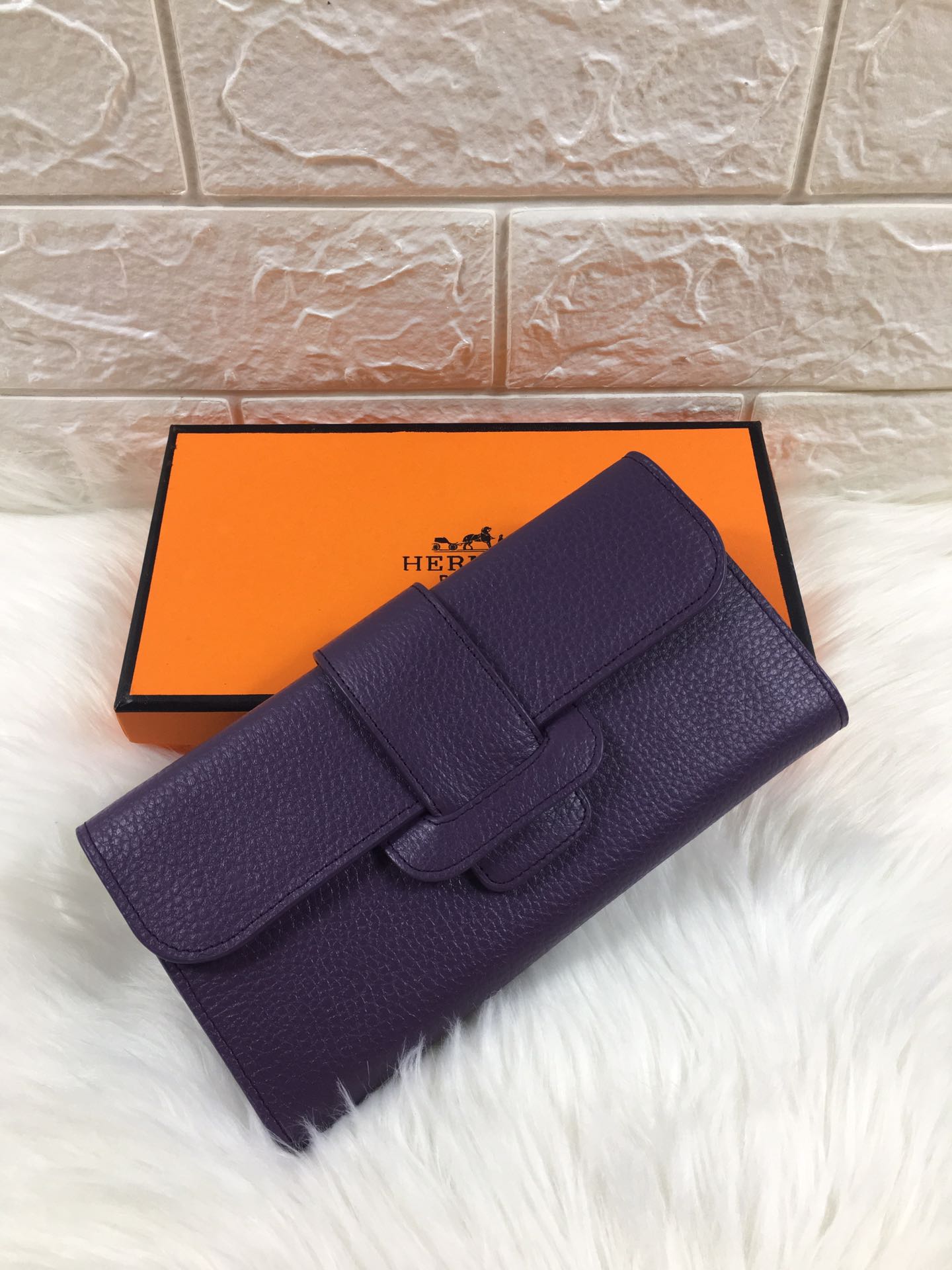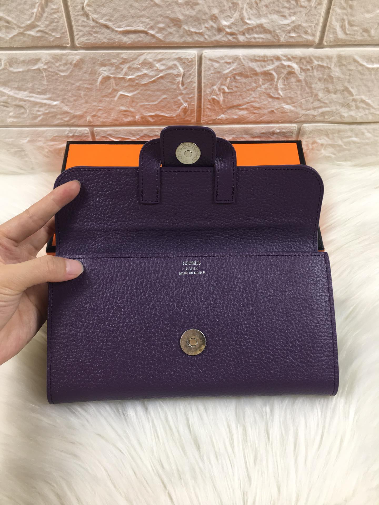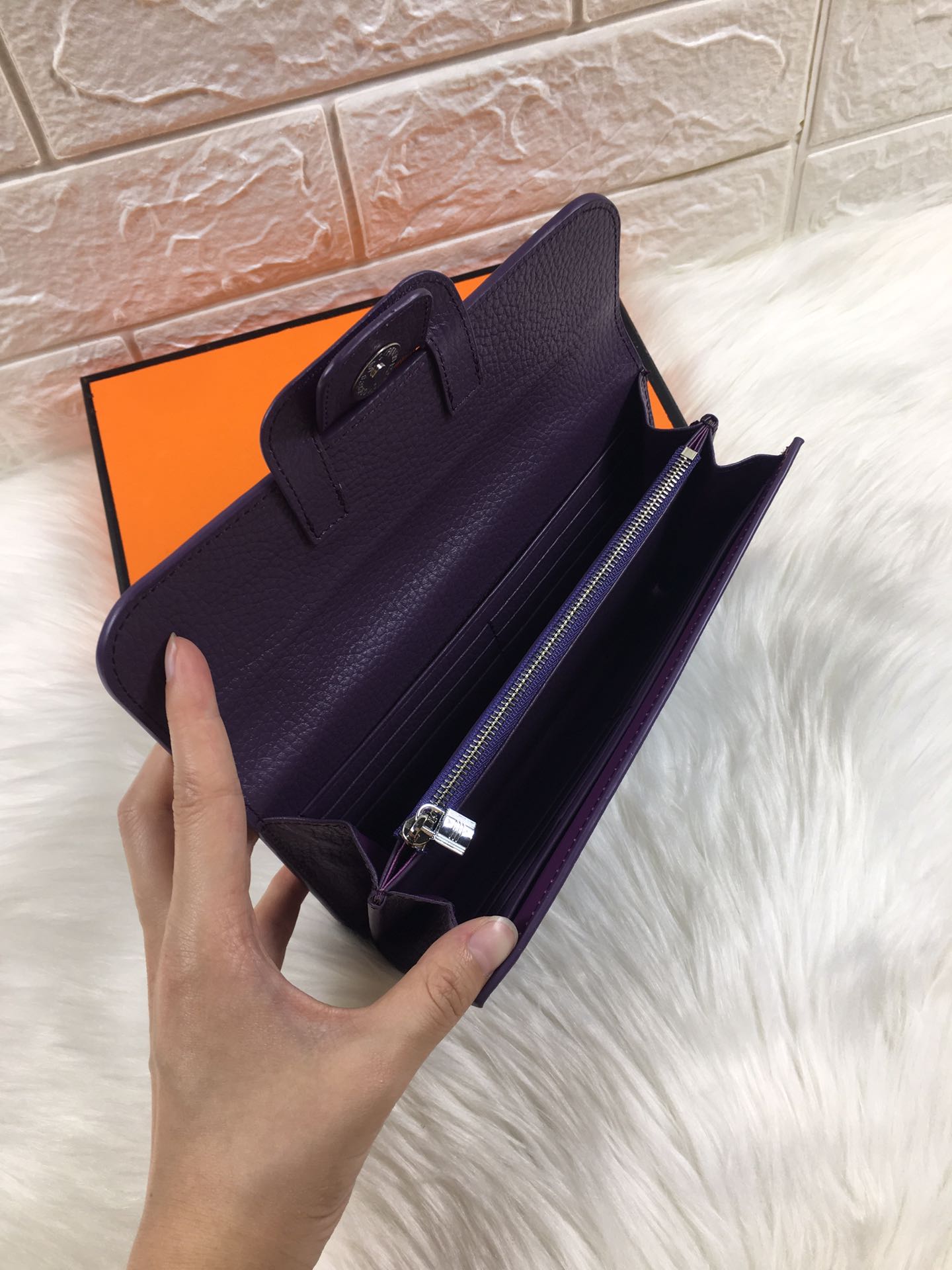 HM SNAP LOCK WALLET 19.5 EGGPLANT GRAINED CALFSKIN