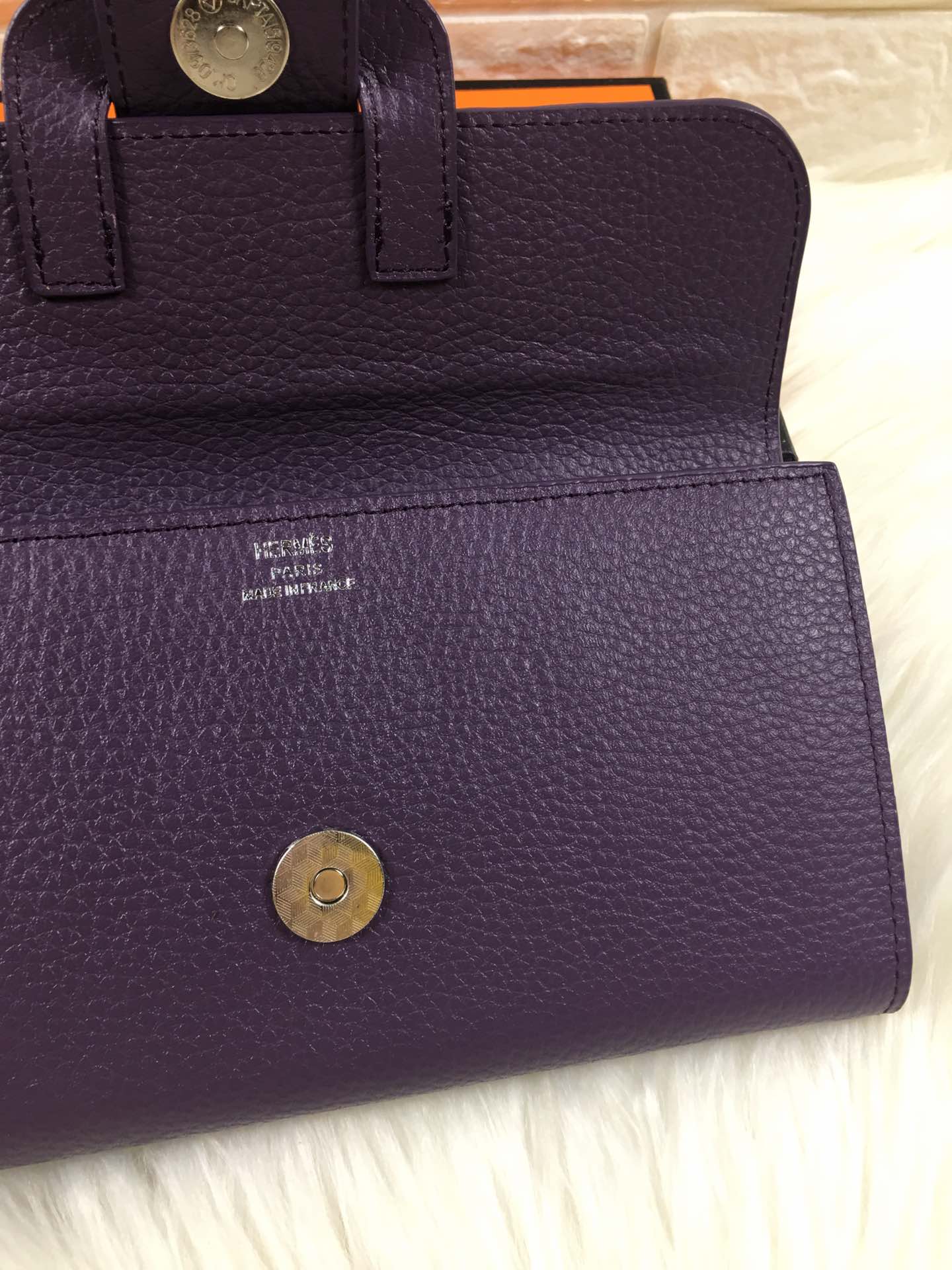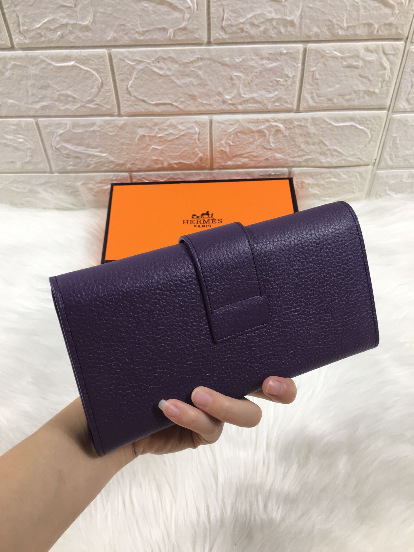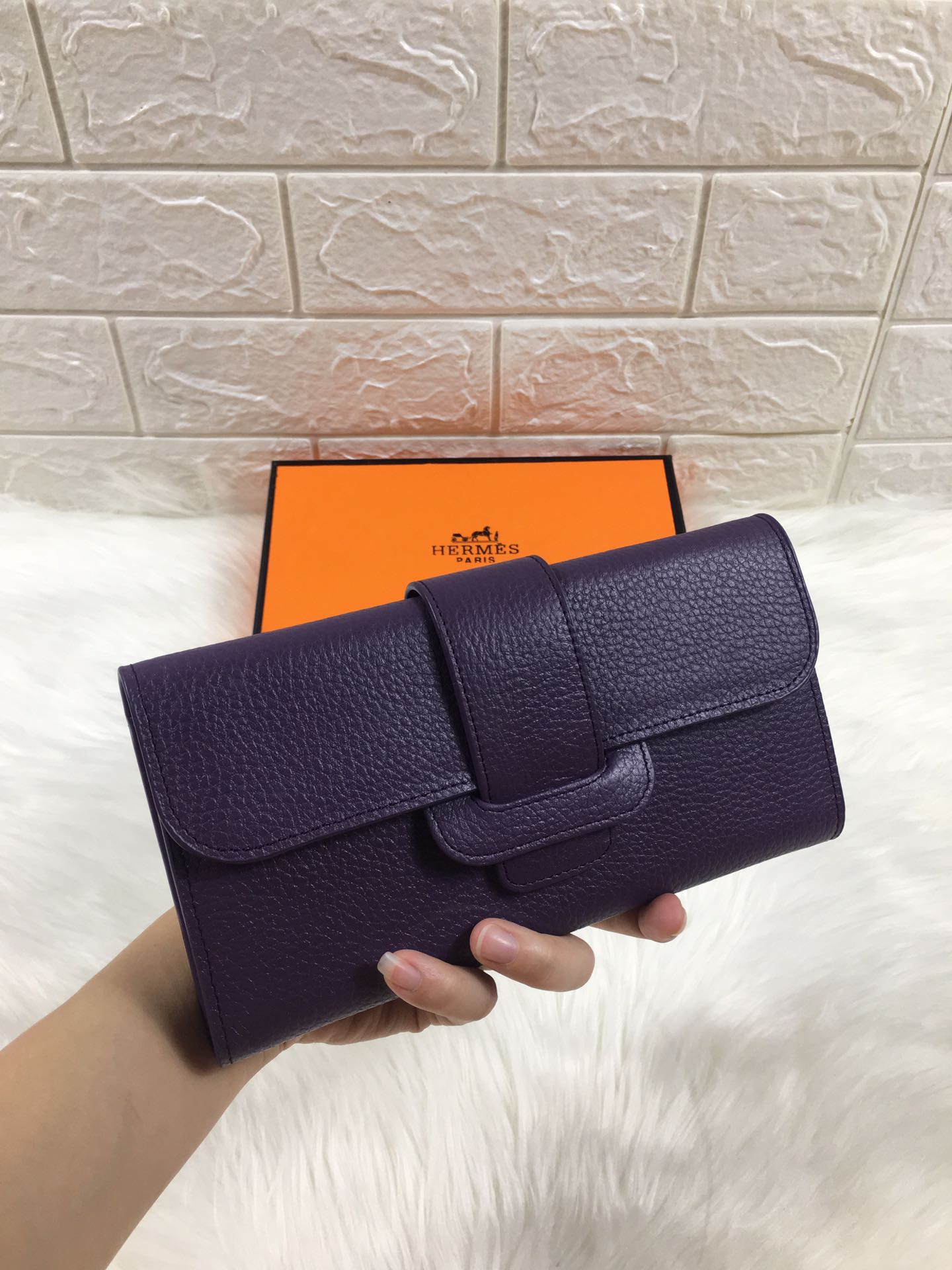 HM SNAP LOCK WALLET 19.5 EGGPLANT GRAINED CALFSKIN