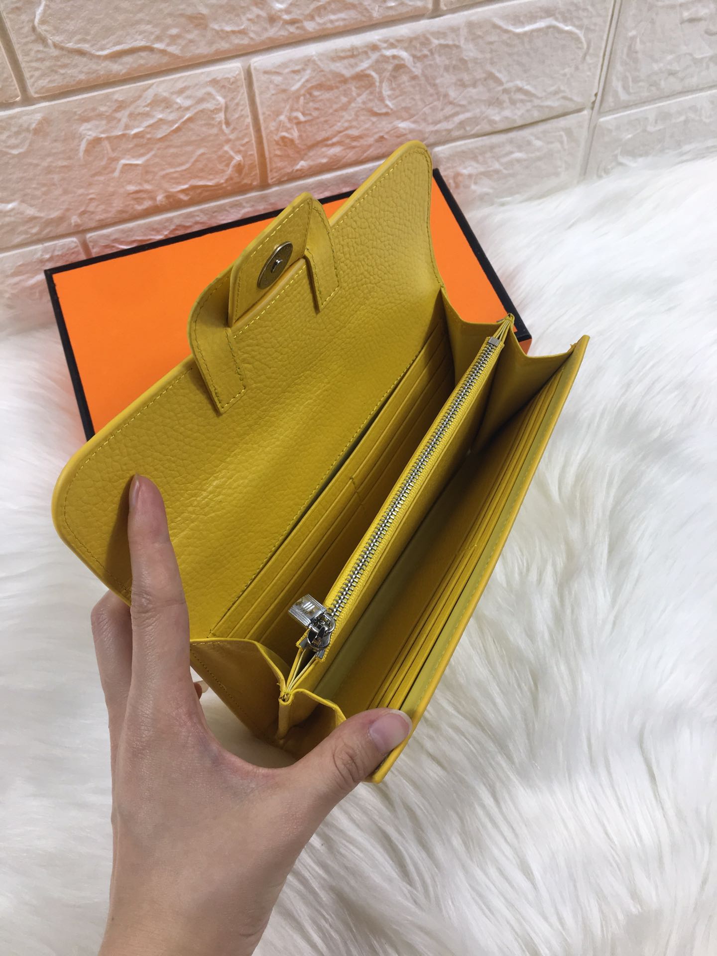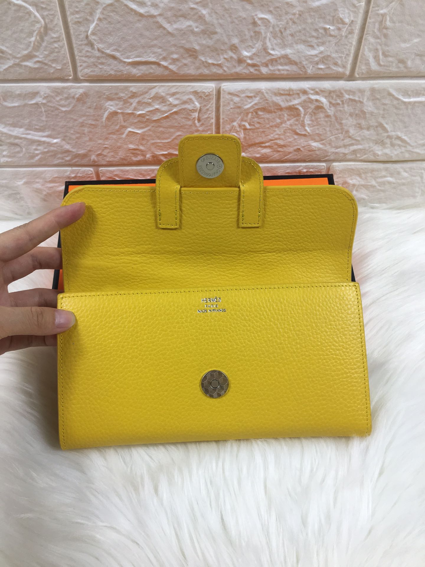 HM SNAP LOCK WALLET 19.5 LEMON GRAINED CALFSKIN