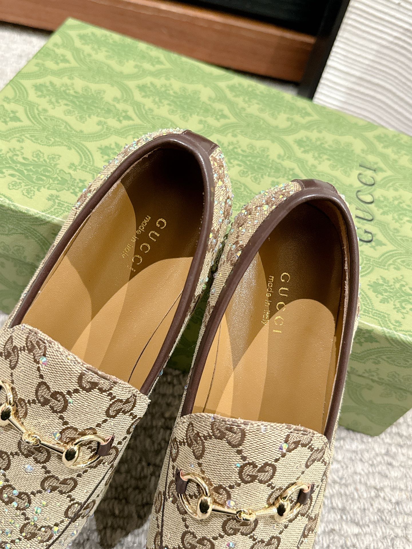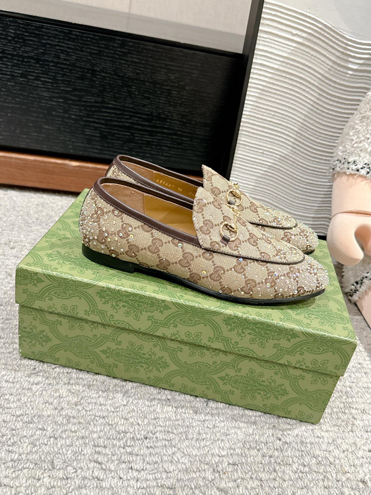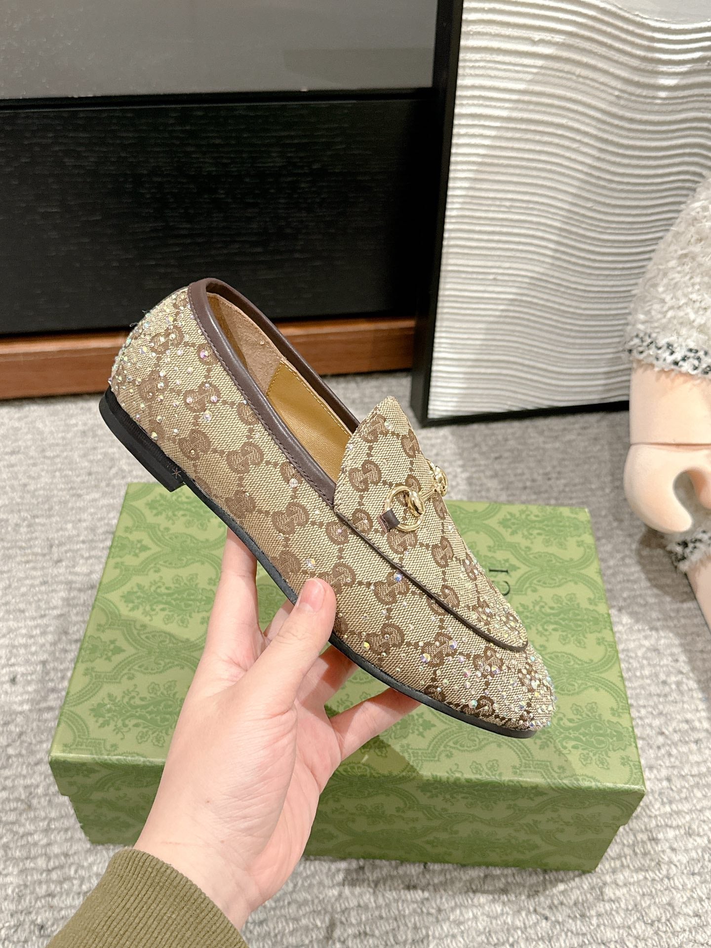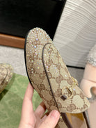 Horsebit Jordaan Loafer Beige Ebony Canvas Crystal-Embellished