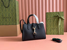 JACKIE SMALL TOTE BAG 24 IN BLACK CALFSKIN GOLD HARDWARE