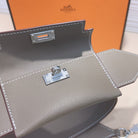 kelly pocket 50mm grey epsom silver hardware shoulder strap