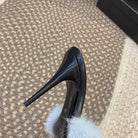 LA 16 HEELED MULES IN SKY BLUE RABBIT FUR AND SMOOTH LAMBSKIN