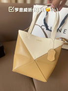 LOE 21 PUZZLE FOLD TOTE IN WHITE MIX NAPLES YELLOW SHINY CALFSKIN