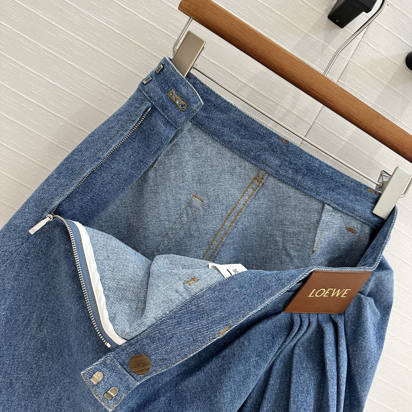 Loewe 25 Draped Denim Skirt Blue Cotton