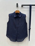 Loewe 25 Lace-up Waist Sleeveless Shirt Dark Blue Linen
