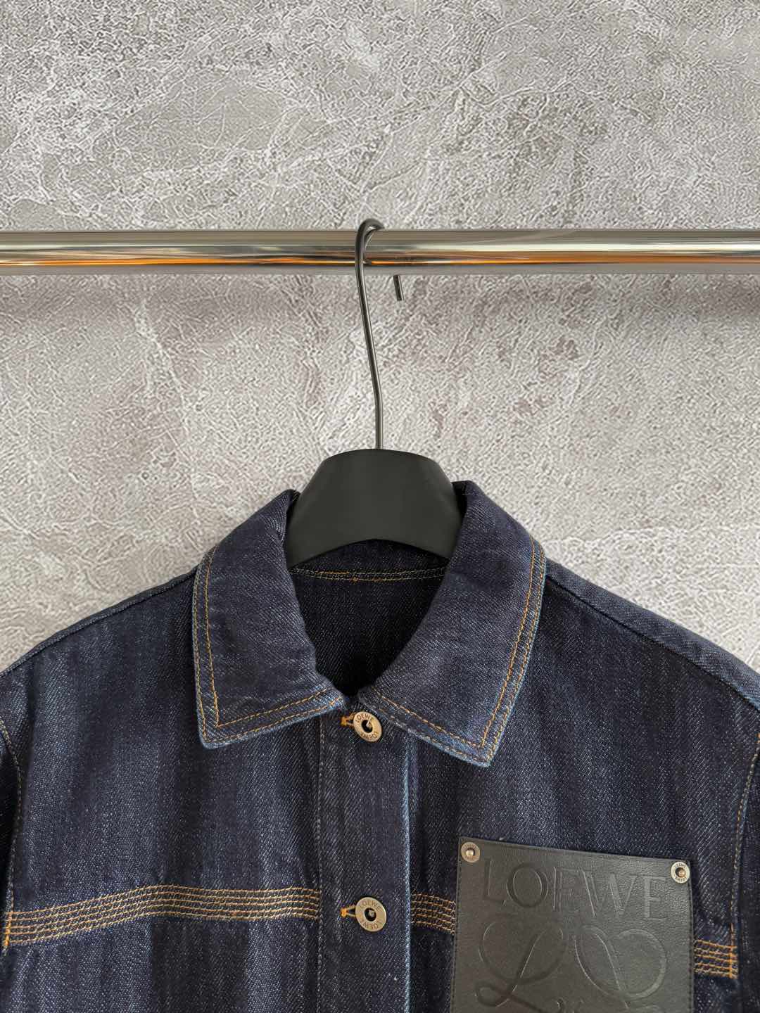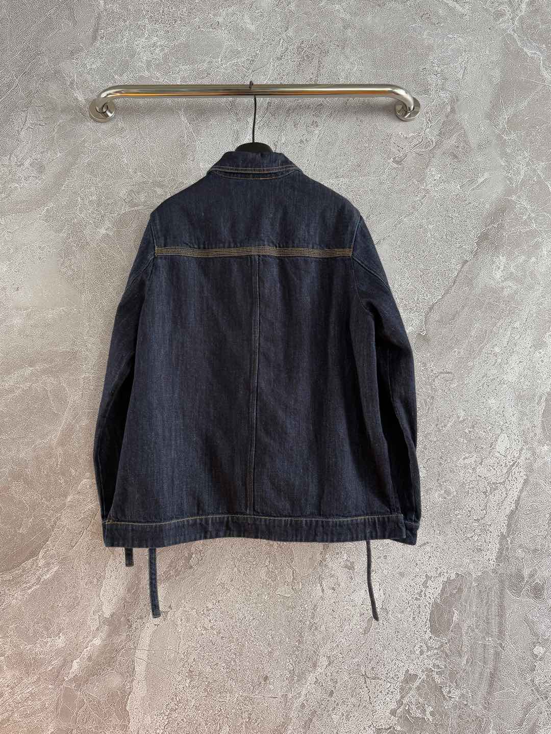 Loewe Pocket Leather Jacket Dark Blue Denim Cotton