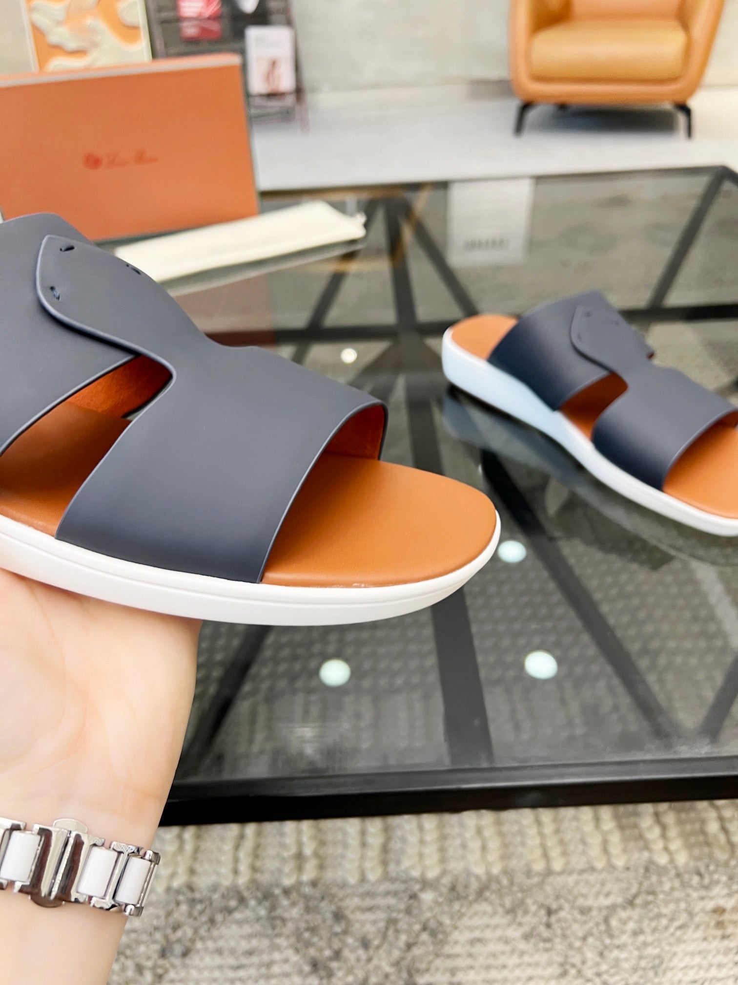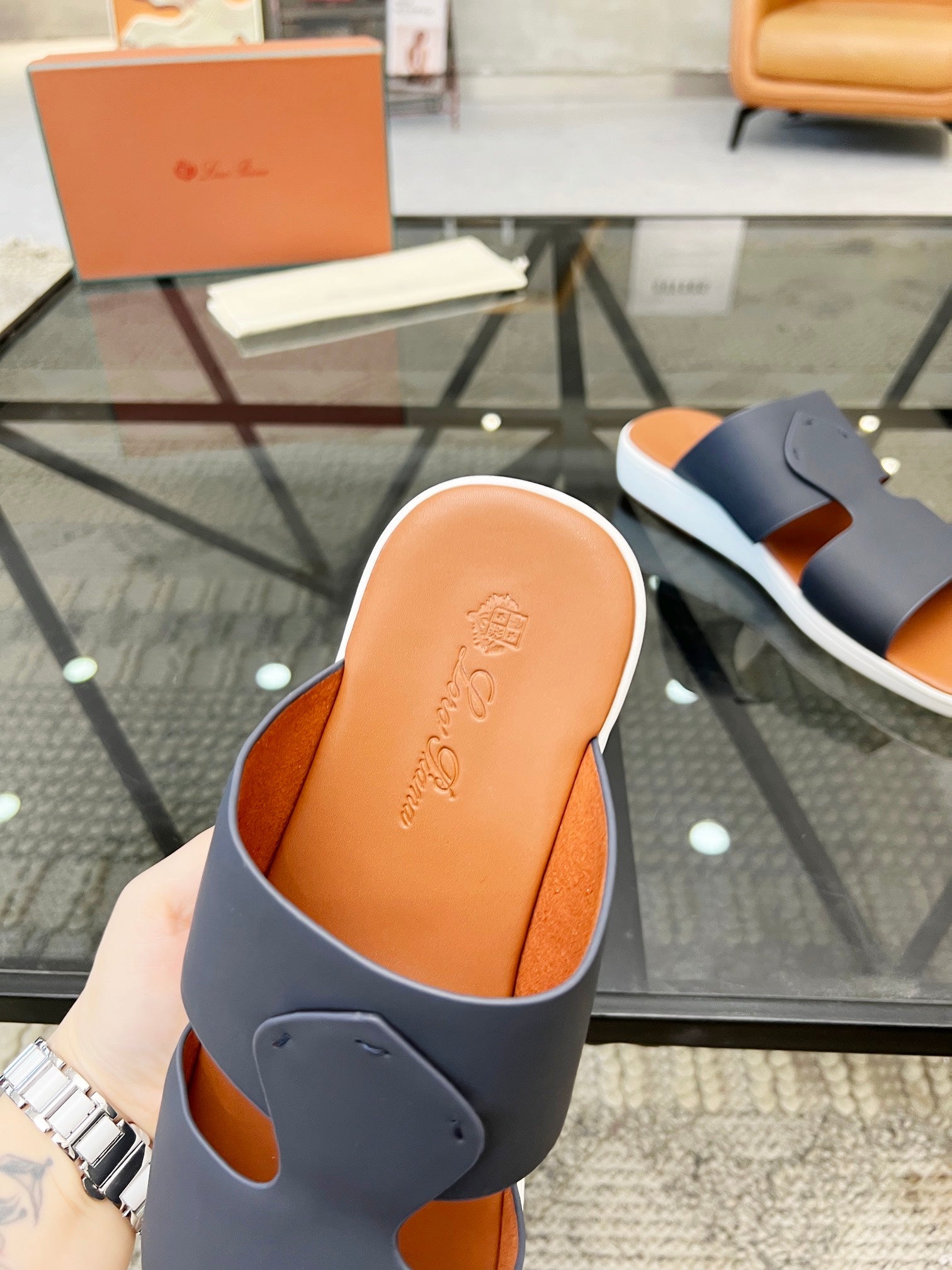 LP CROSSOVER SLIPPERS NAVY CALFSKIN