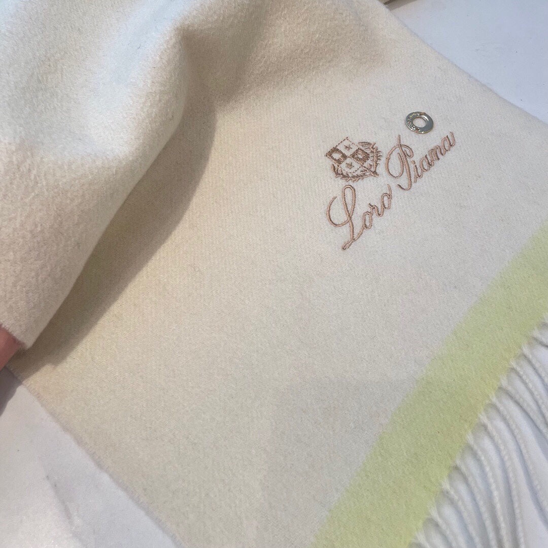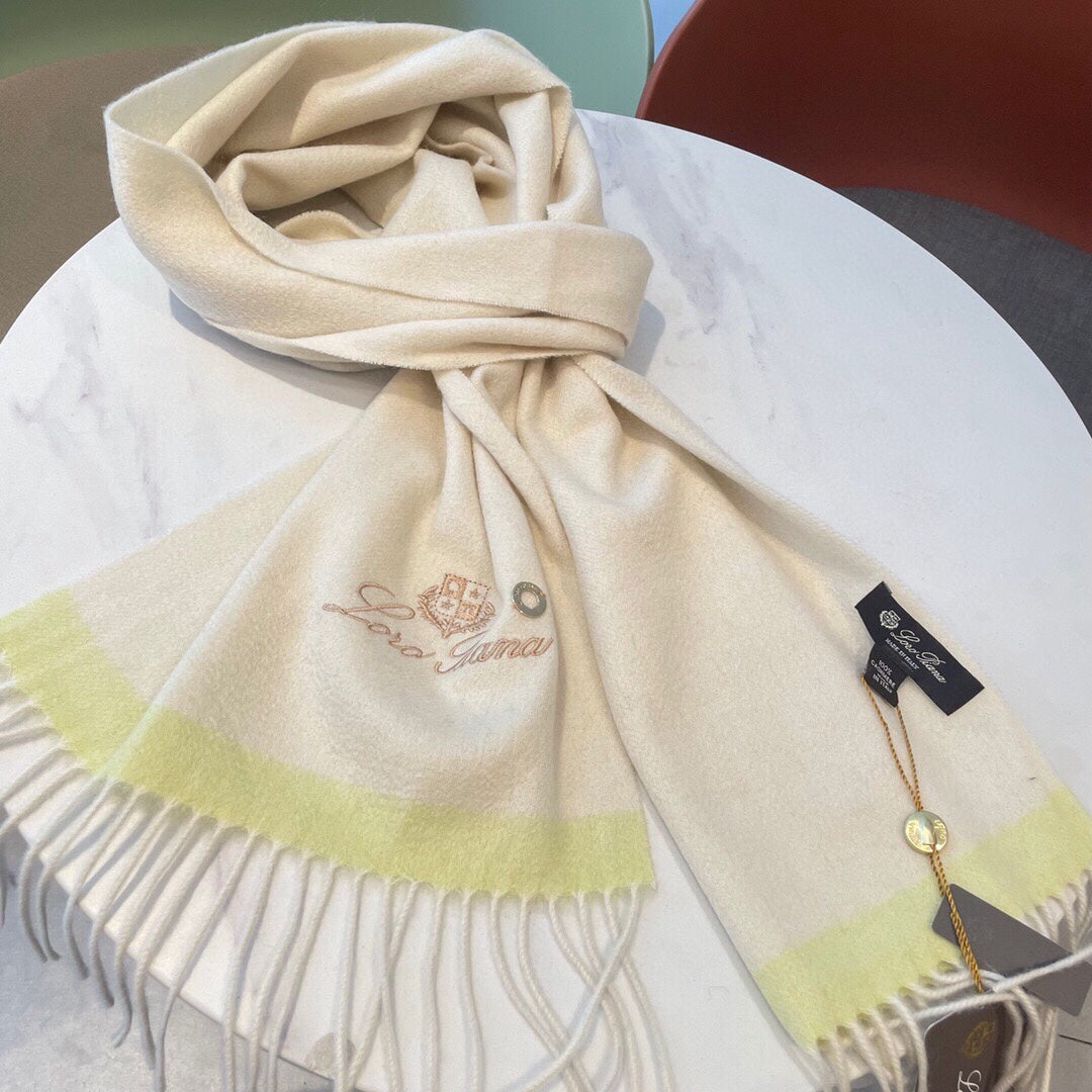 LP Grande Unita Scarf 180 CM In Ivory White With Light Yellow Cashmere 175043