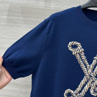 LV 25 Button Rope Jacquard Knitted T-Shirt Blue Wool Polyester