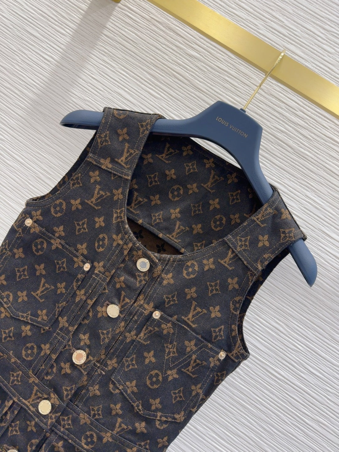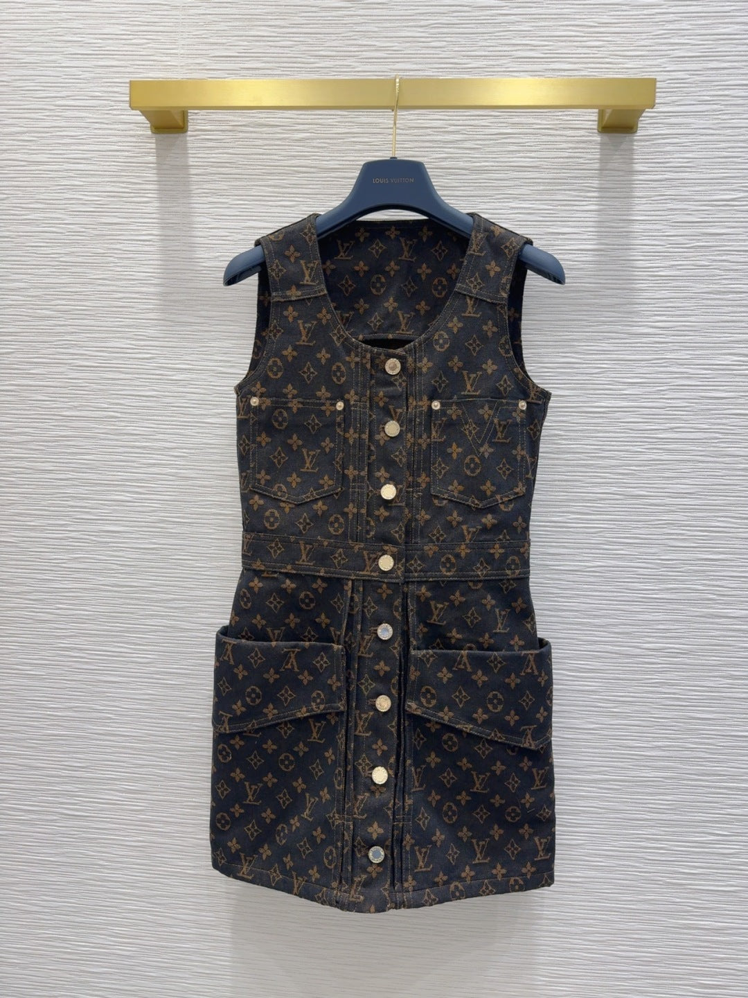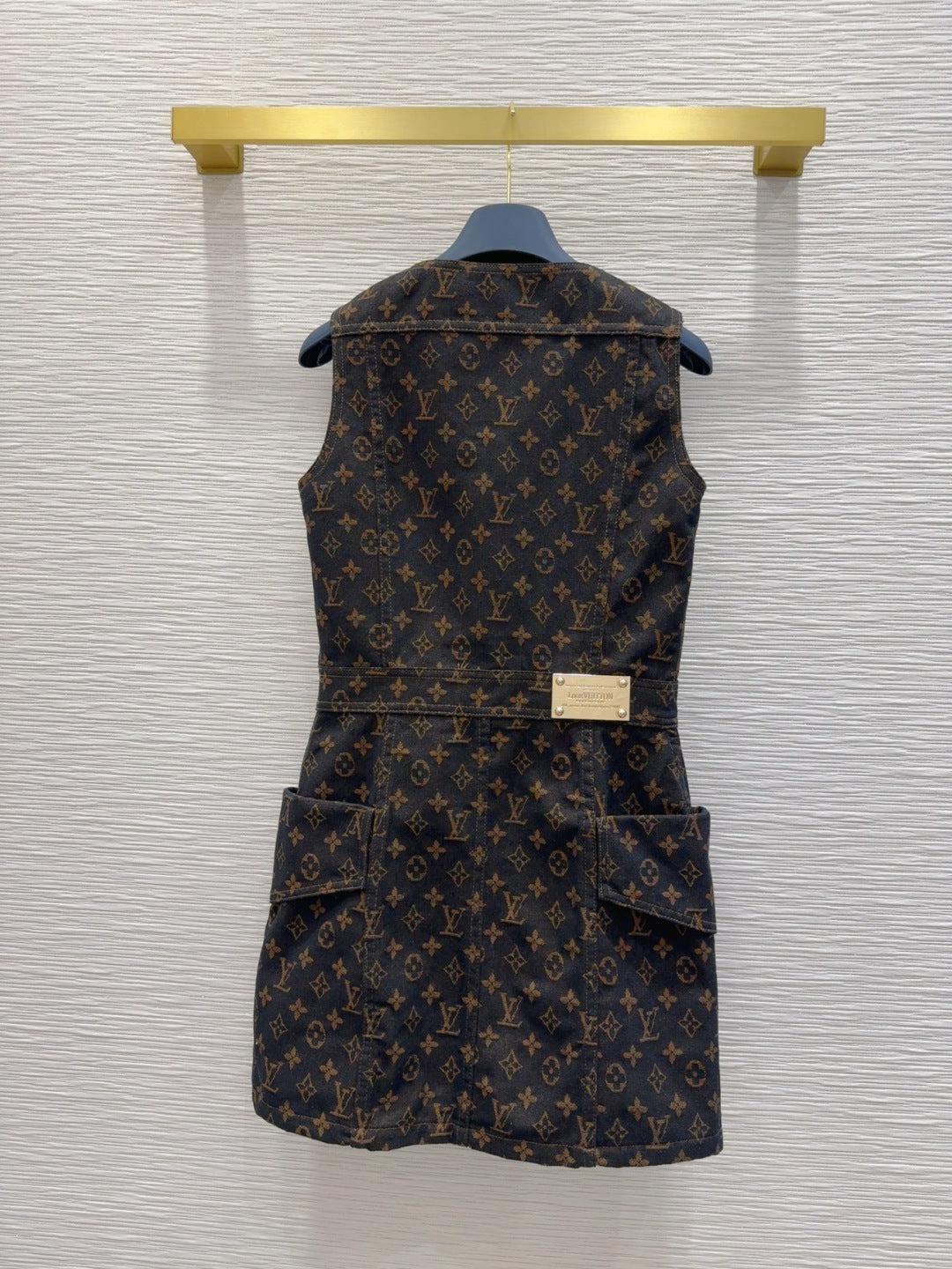 LV 25 Classic Logo Denim Vest Dress Black Cotton