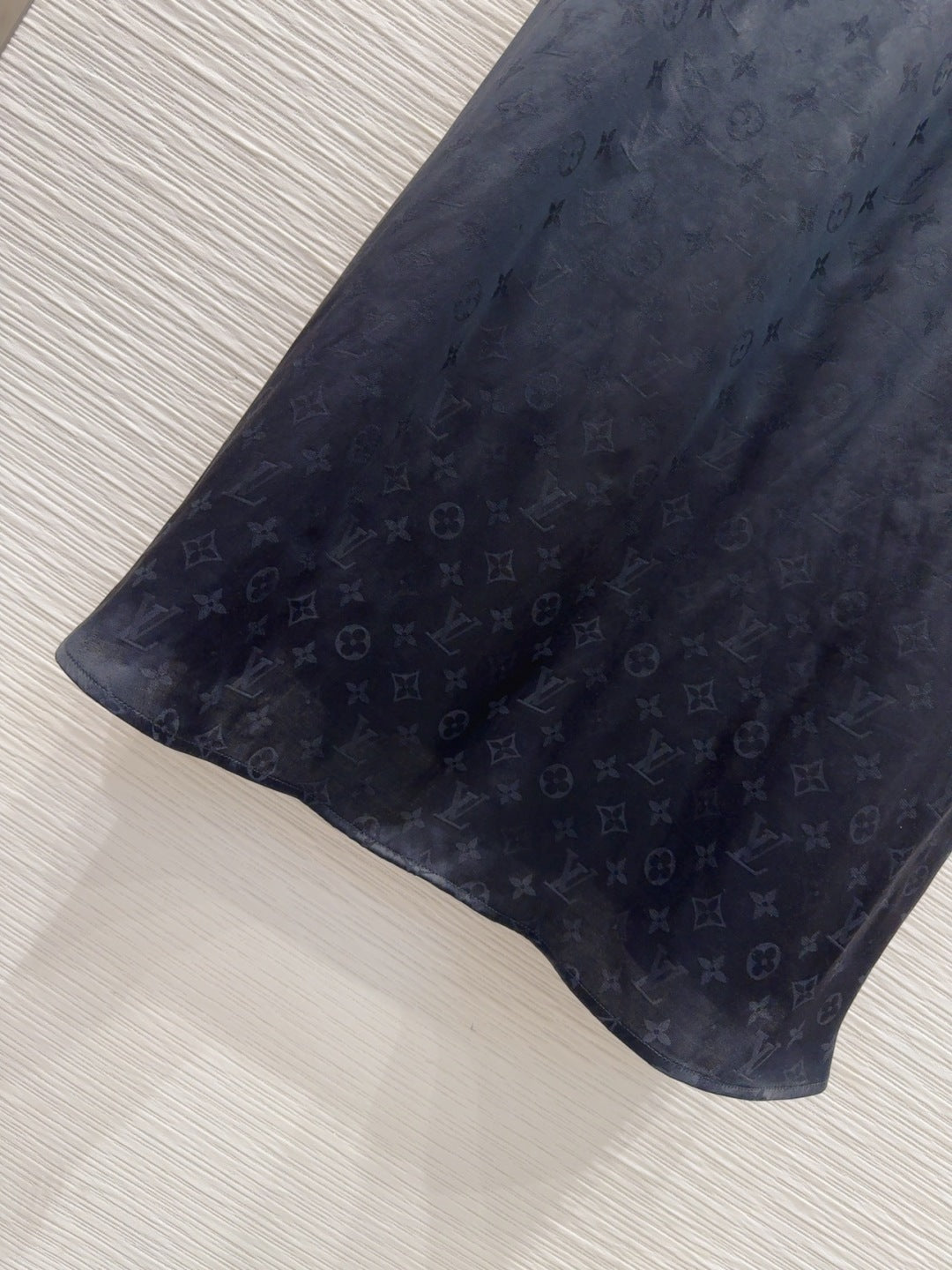 LV 25 Custom Zipper Collar Dress Black White Viscose Rayon