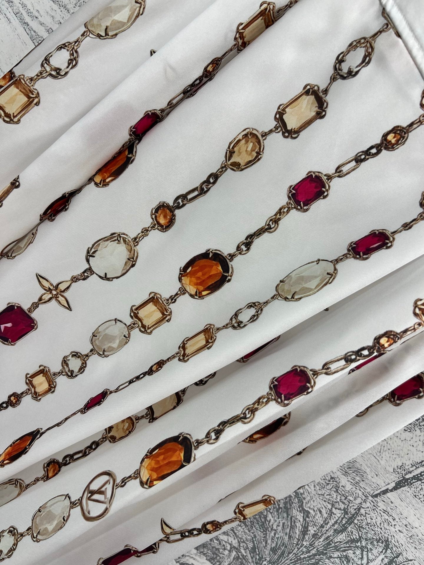 LV 25 Decorative Pattern Gemstone Chain Pleated Skirt White Poliester