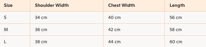 - Size : S, M, L