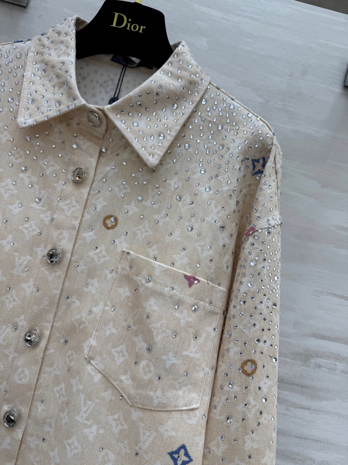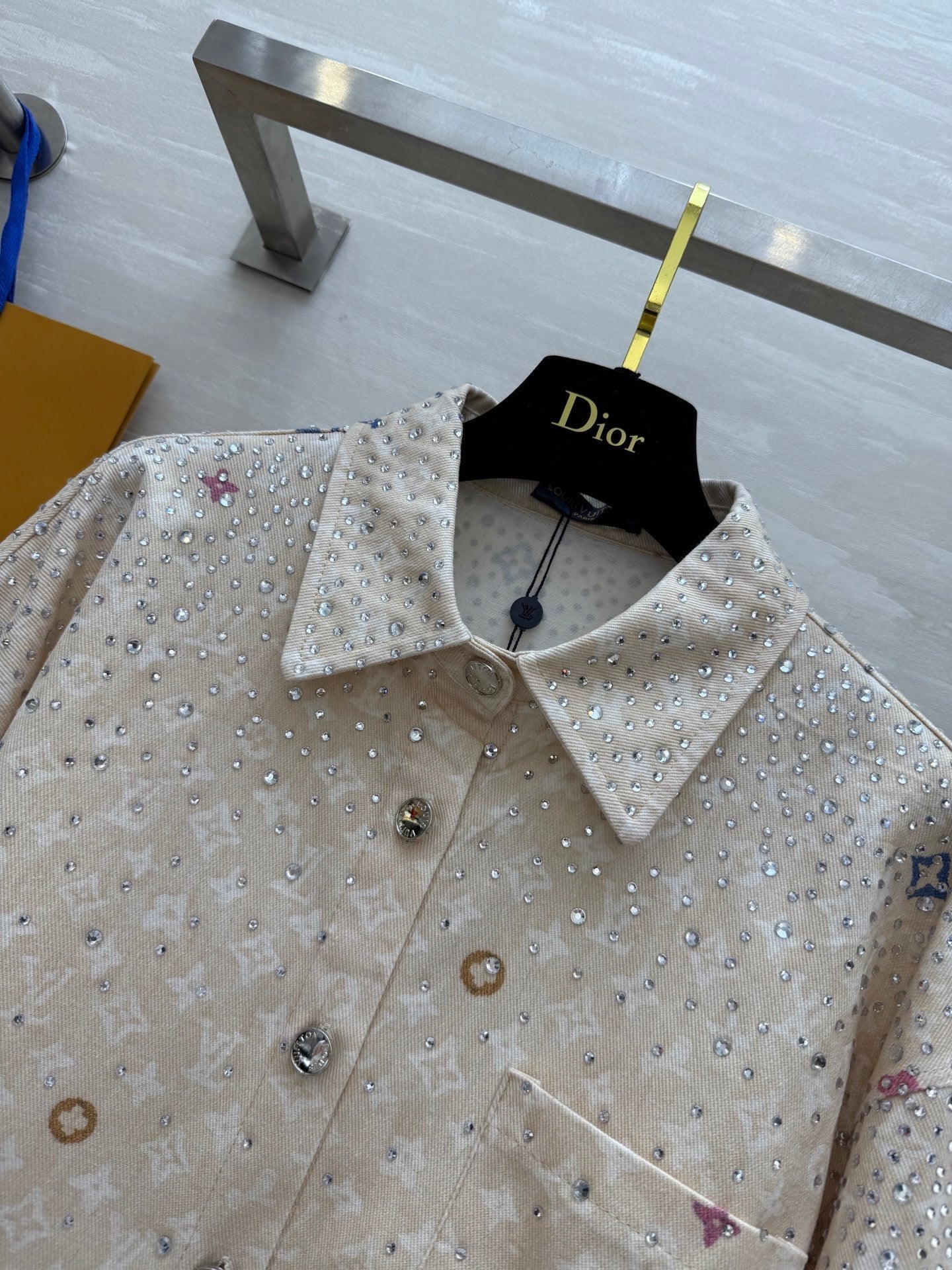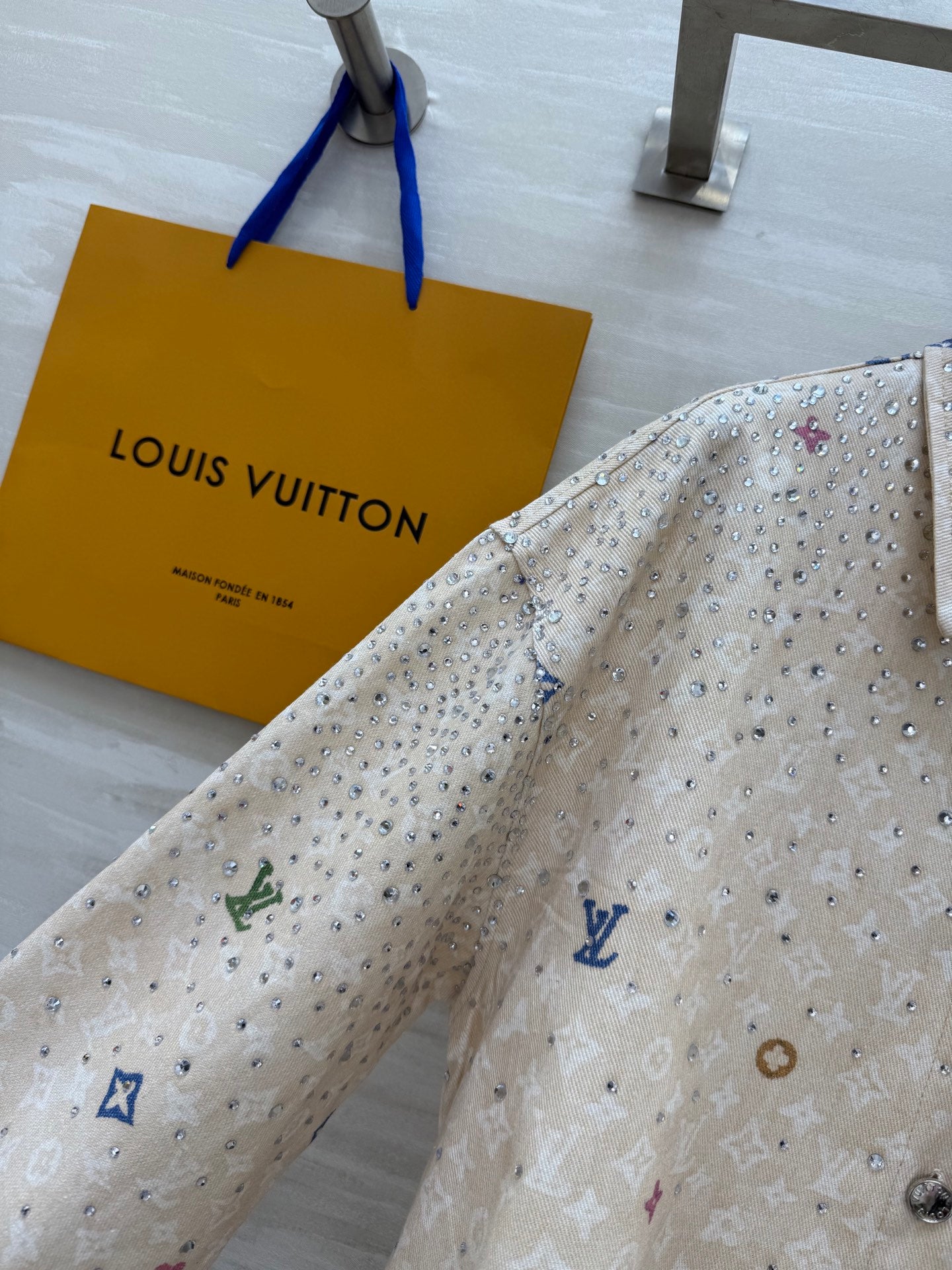 LV 25 Star-Studded Rhinestone Beige Denim