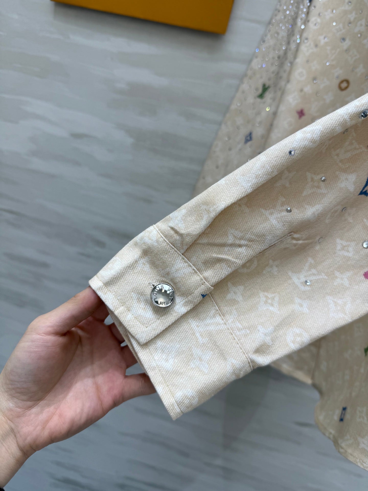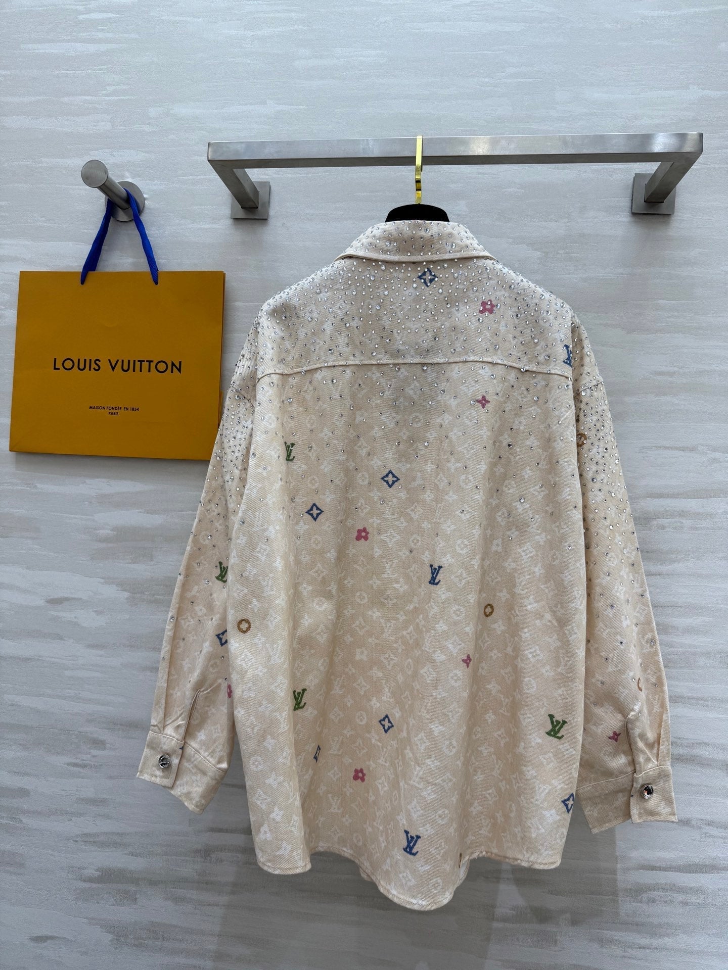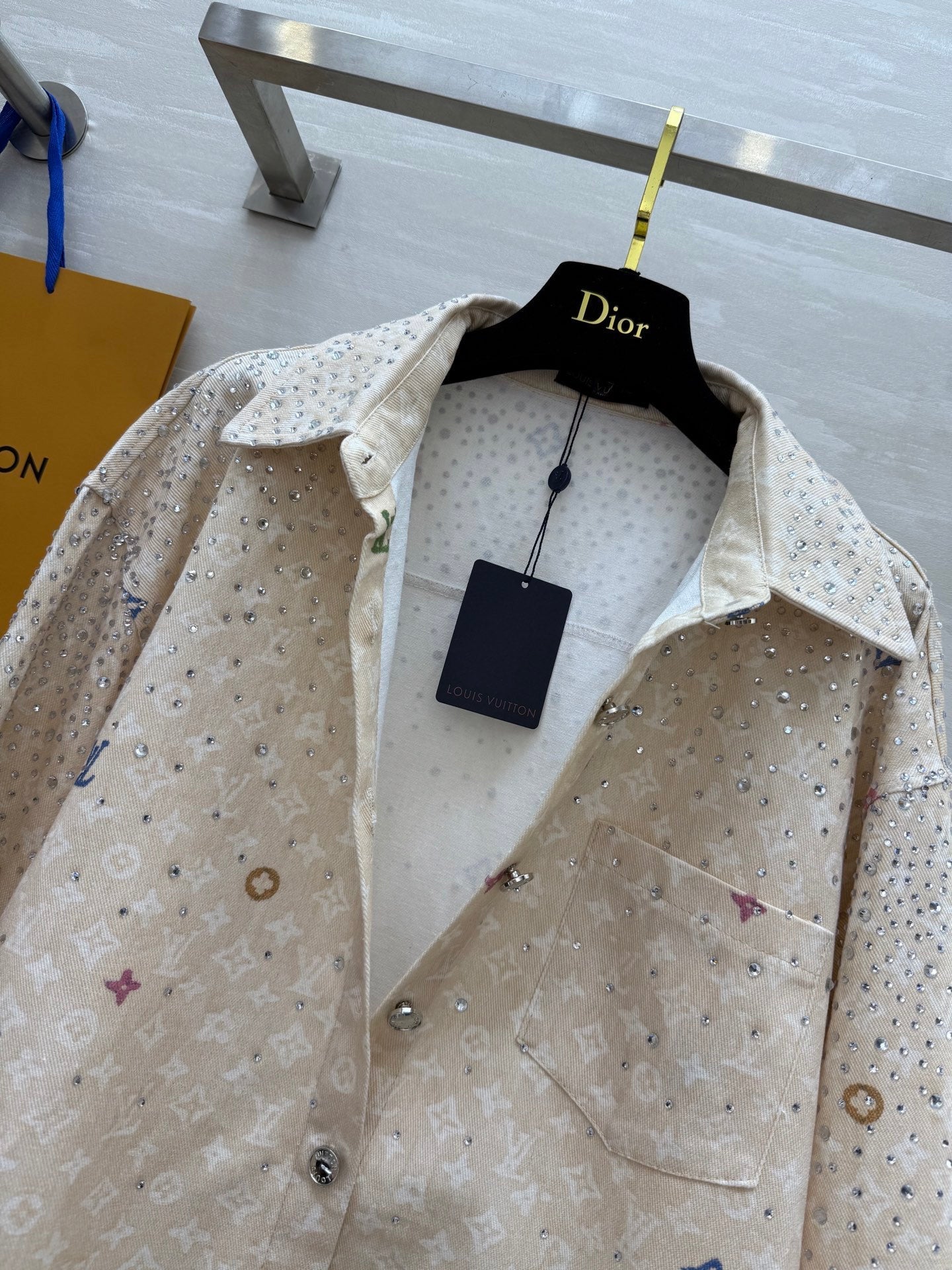 LV 25 Star-Studded Rhinestone Beige Denim